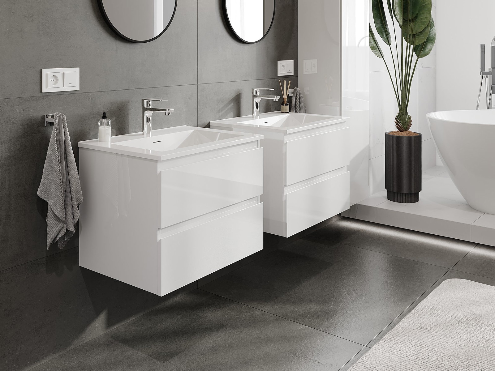 Modulaariset kylpyhuonekalusteemme voidaan yhdistää eri väriyhdistelminä, mikä mahdollistaa täydellisen personoinnin. Voit valita sekä ulkonäön että yksittäisten elementtien toiminnot, mikä mahdollistaa huonekalujen mukauttamisen omien tyylillisten ja käyttöön liittyvien mieltymysten mukaan.