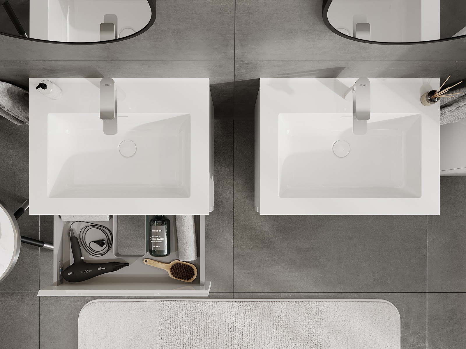 Mexen Orio kylpyhuonekaappi 60 cm pesualtaalla Otis, 2 laatikkoa, valkoinen kiiltävä - 91A10-06047-2-BFF00-W18M00