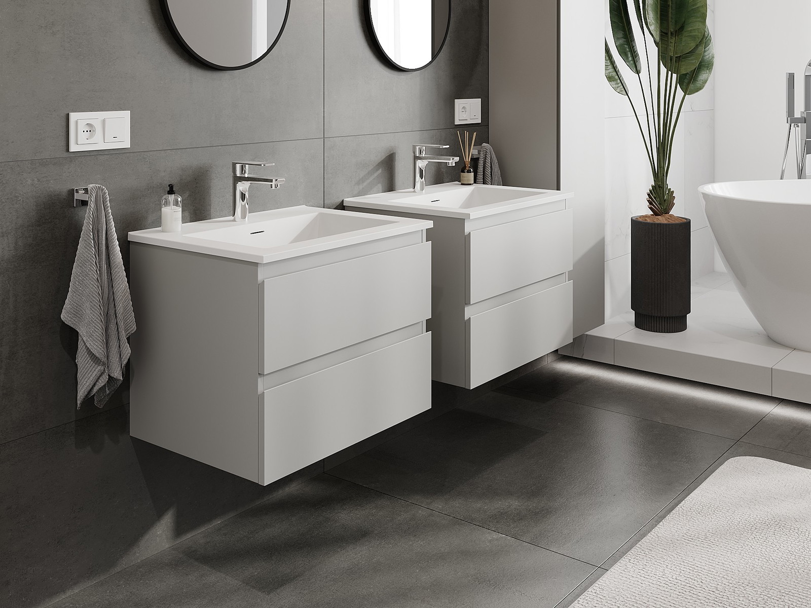 Mexen Orio kylpyhuonekaappi 60 cm pesualtaalla Otis, 2 laatikkoa, harmaa matta/valkoinen matta - 91A10-06047-2-BFF62-W18M01