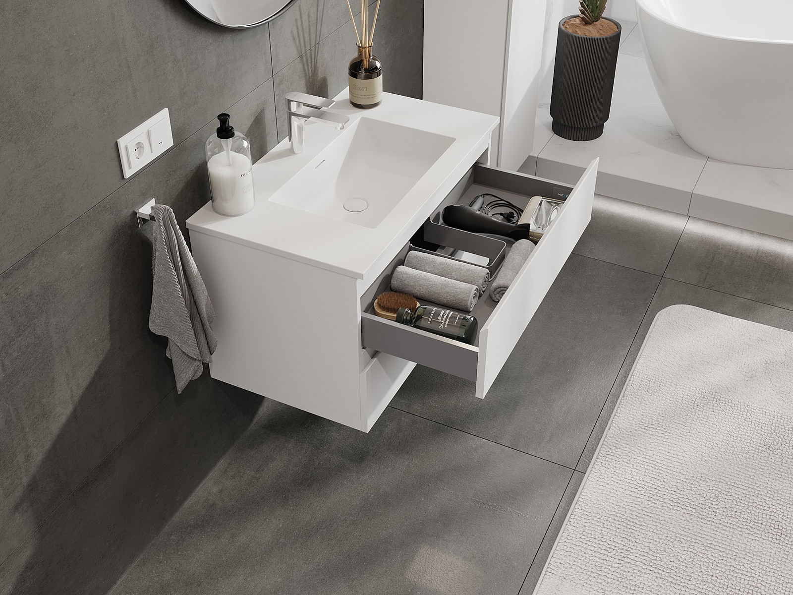 Modulaariset kylpyhuonekalusteemme voidaan yhdistää eri väriyhdistelminä, mikä mahdollistaa täydellisen personoinnin. Voit valita sekä ulkonäön että yksittäisten elementtien toiminnot, mikä mahdollistaa huonekalujen mukauttamisen omien tyylillisten ja käyttöön liittyvien mieltymysten mukaan.