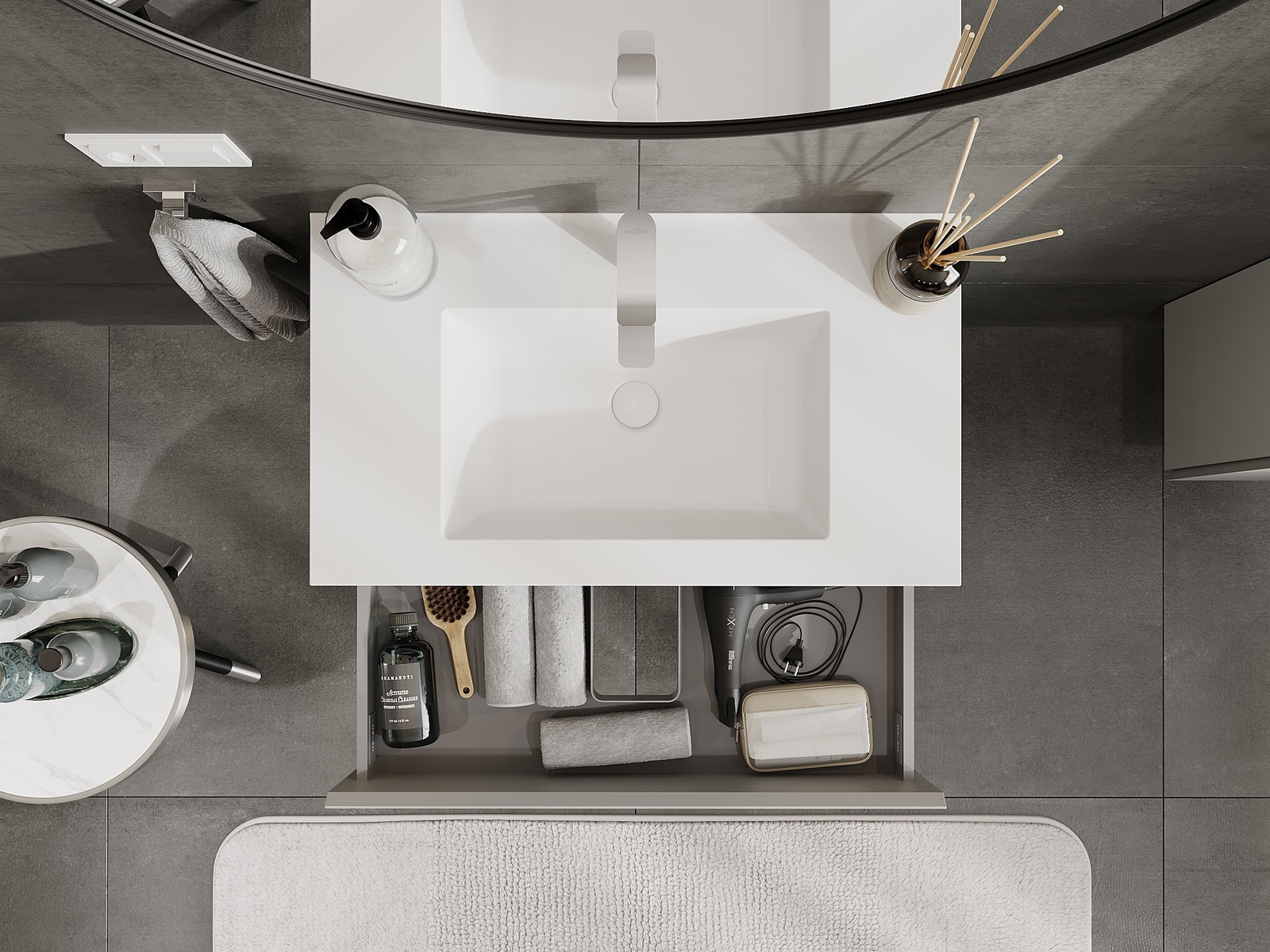 Mexen Orio kylpyhuonekaappi 80 cm pesualtaalla Otis, 2 laatikkoa, harmaa matta/valkoinen matta - 91A10-08047-2-BFF62-W18M01