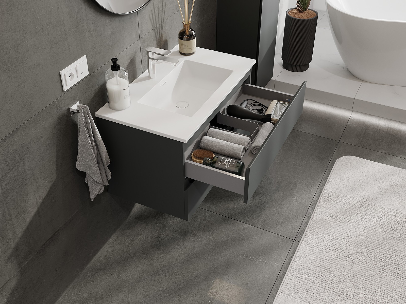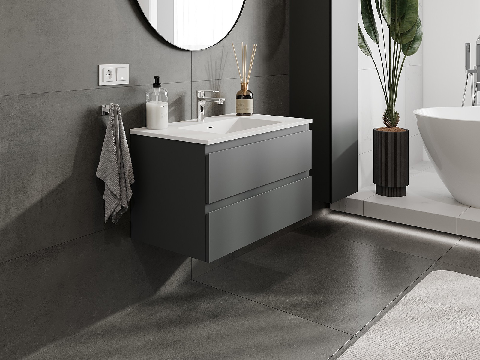 Mexen Orio kylpyhuonekaappi 80 cm pesualtaalla Otis, 2 laatikkoa, grafiitti matta/valkoinen matta - 91A10-08047-2-BFF66-W18M01