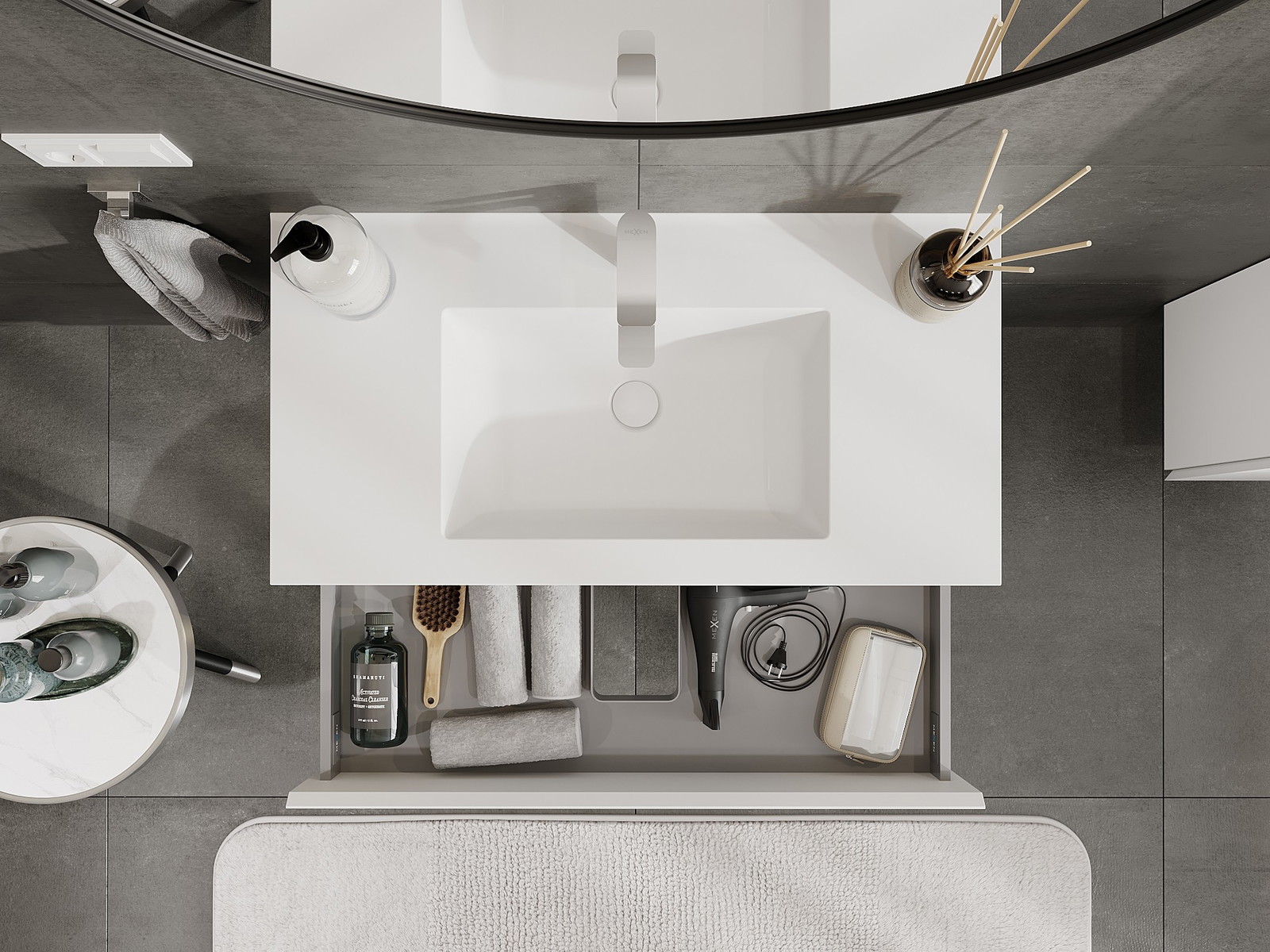 Mexen Orio kylpyhuonekaappi 90 cm pesualtaalla Otis, 2 laatikkoa, valkoinen matta - 91A10-09047-2-BFF01-W18M01