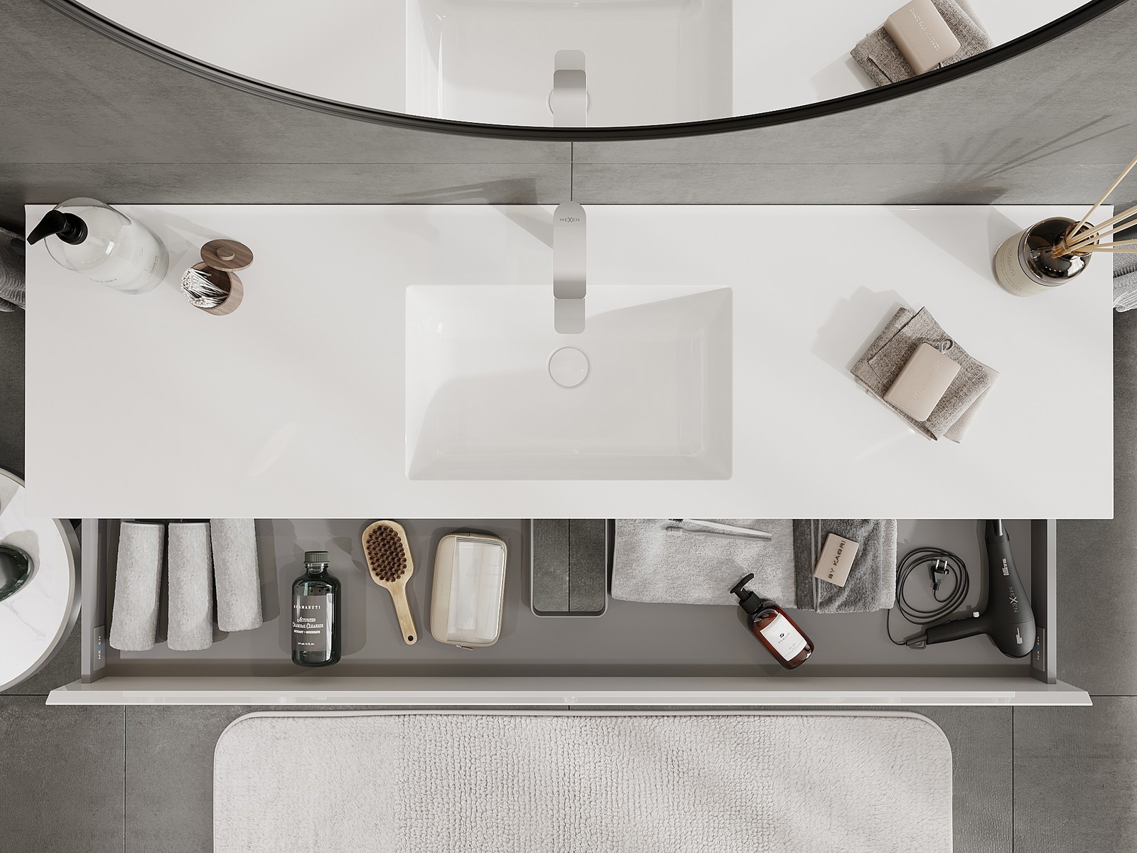 Mexen Orio 160 cm kylpyhuonekaappi pesualtaalla Otis, 2 laatikkoa, kiiltävä valkoinen - 91A10-16047-2-BFF00-W18M00
