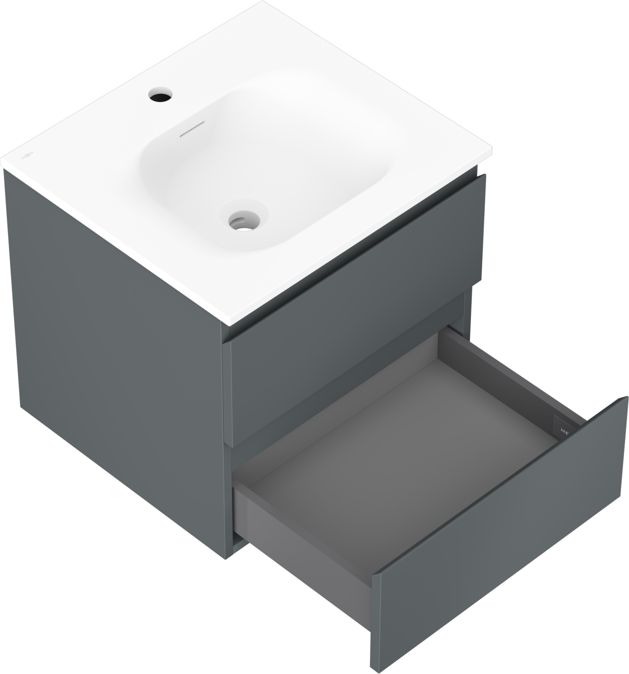 Mexen Orio kylpyhuonekaappi 50 cm pesualtaalla Vela, 2 laatikkoa, grafiitin mattapintainen/valkoinen mattapintainen