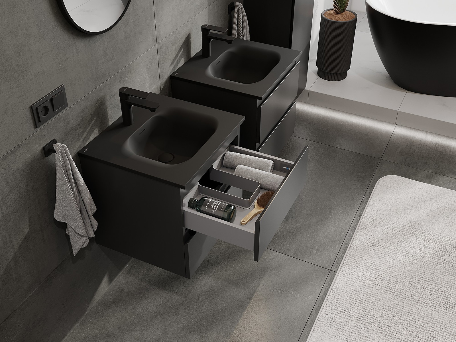 Modulaariset kylpyhuonekalusteemme voidaan yhdistää eri väriyhdistelminä, mikä mahdollistaa täydellisen personoinnin. Voit valita sekä ulkonäön että yksittäisten elementtien toiminnot, mikä mahdollistaa huonekalujen mukauttamisen omien tyylillisten ja käyttöön liittyvien mieltymysten mukaan.