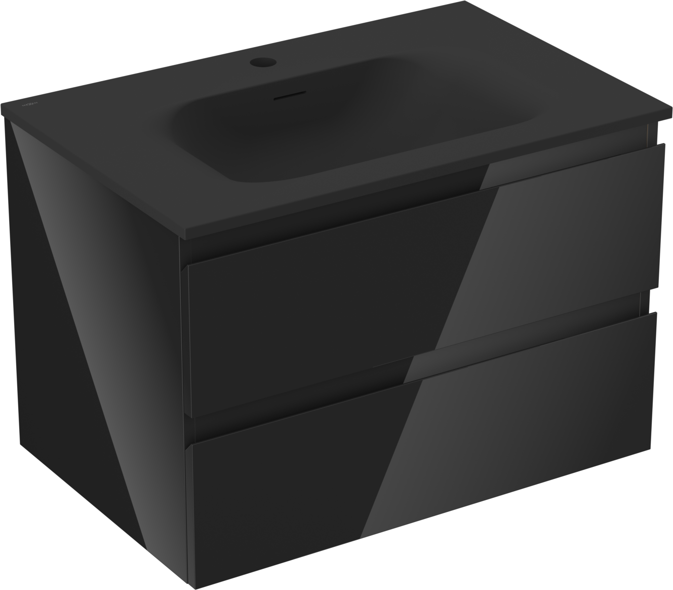 Mexen Orio kylpyhuoneen kaappi 70 cm pesualtaalla Vela, 2 laatikkoa, musta kiiltävä/musta matta - 91A10-07047-2-BFF70-W23M71