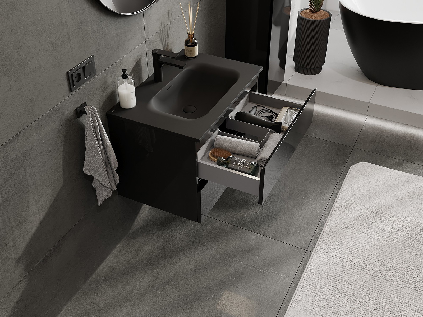 Modulaariset kylpyhuonekalusteemme voidaan yhdistää eri väriyhdistelminä, mikä mahdollistaa täydellisen personoinnin. Voit valita sekä ulkonäön että yksittäisten elementtien toiminnot, mikä mahdollistaa huonekalujen mukauttamisen omien tyylillisten ja käyttöön liittyvien mieltymysten mukaan.