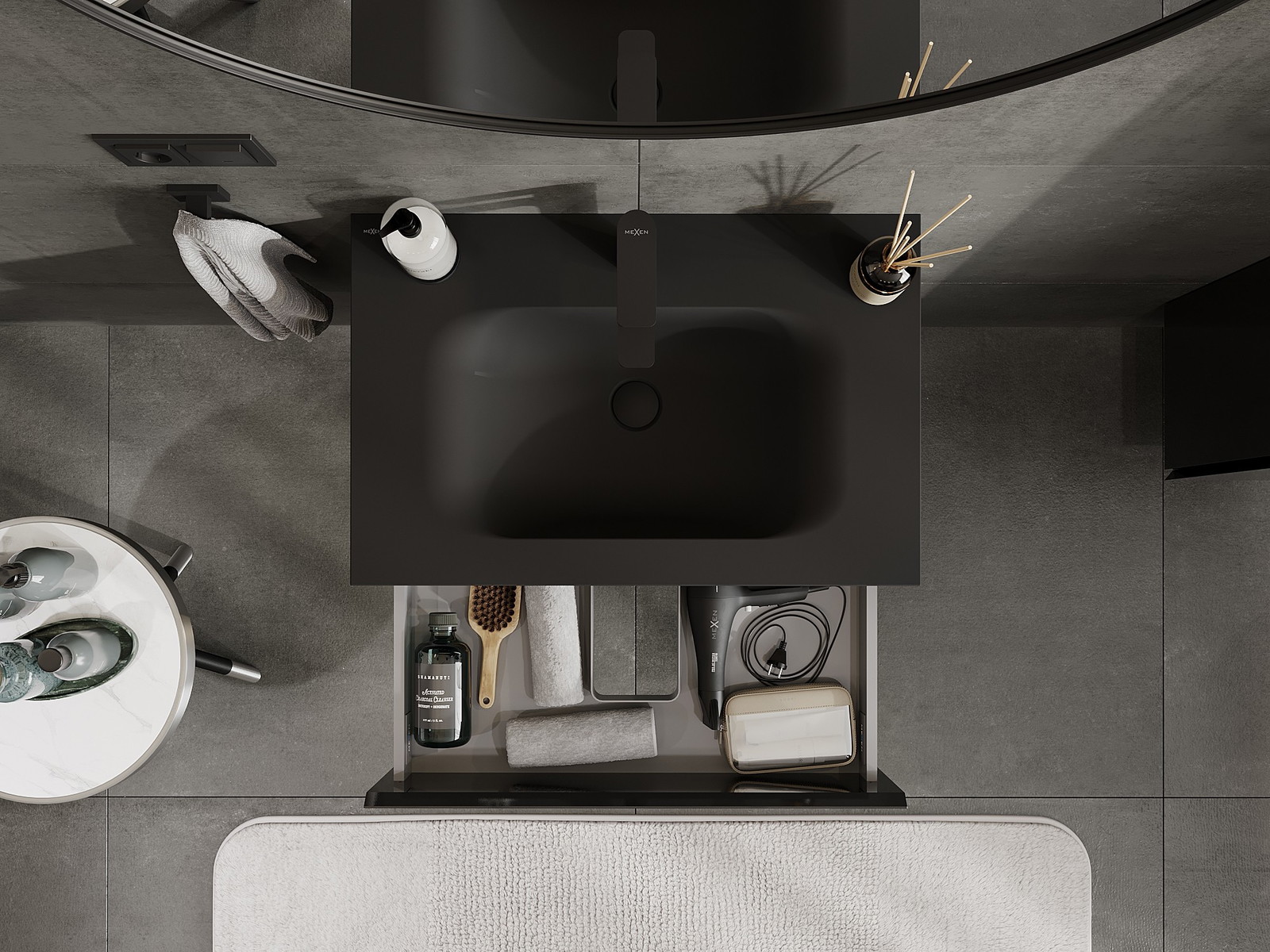 Kiinteiden materiaalien, tarkan työn ja nykyaikaisten teknologisten ratkaisujen ansiosta tuote tarjoaa käyttömukavuutta, kestävyyttä kosteutta ja lämpötilan muutoksia vastaan sekä elegantin ulkonäön, joka sopii erilaisiin kylpyhuonetyyleihin.