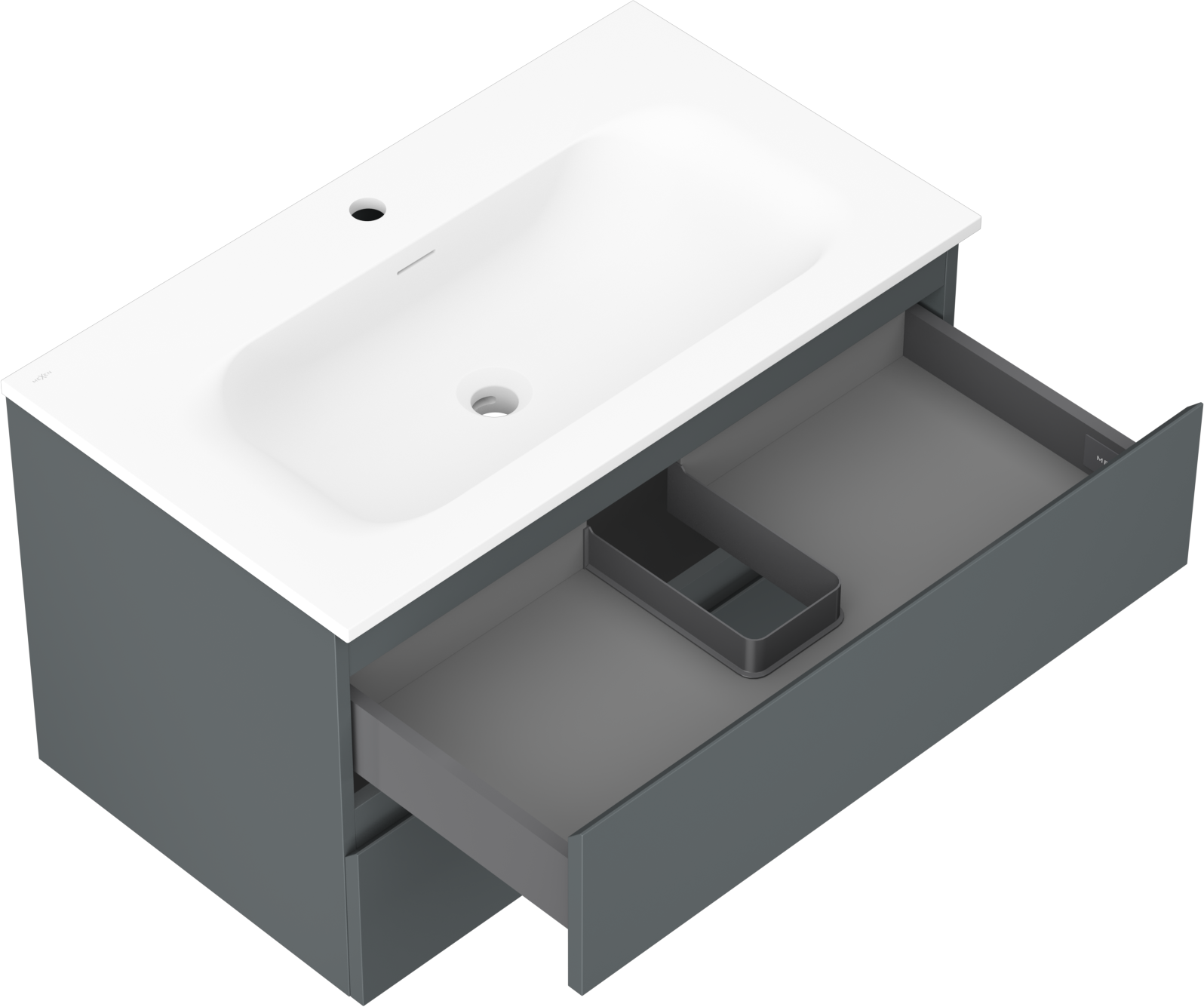 Mexen Orio 80 cm kylpyhuonekaappi altaalla Vela, 2 laatikkoa, grafiitinharmaa matta/valkoinen matta - 91A10-08047-2-BFF66-W23M01