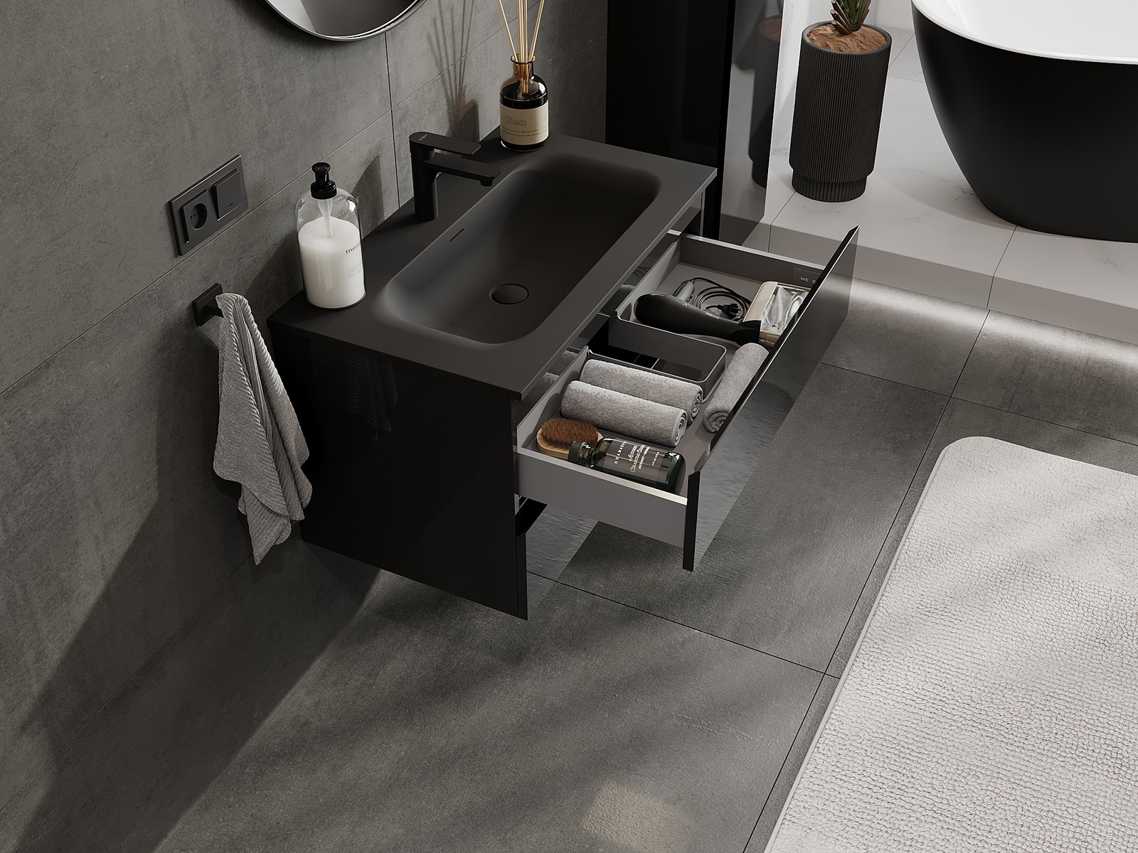 Kiinteiden materiaalien, tarkan työn ja nykyaikaisten teknologisten ratkaisujen ansiosta tuote tarjoaa käyttömukavuutta, kestävyyttä kosteutta ja lämpötilan muutoksia vastaan sekä elegantin ulkonäön, joka sopii erilaisiin kylpyhuonetyyleihin.