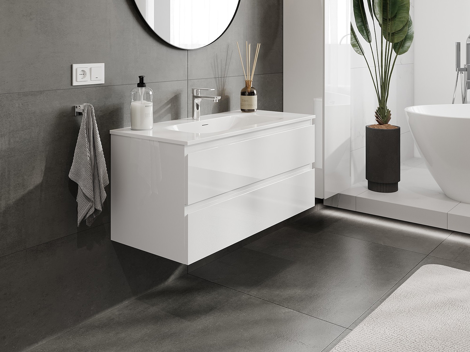 Modulaariset kylpyhuonekalusteemme voidaan yhdistää eri väriyhdistelminä, mikä mahdollistaa täydellisen personoinnin. Voit valita sekä ulkonäön että yksittäisten elementtien toiminnot, mikä mahdollistaa huonekalujen mukauttamisen omien tyylillisten ja käyttöön liittyvien mieltymysten mukaan.