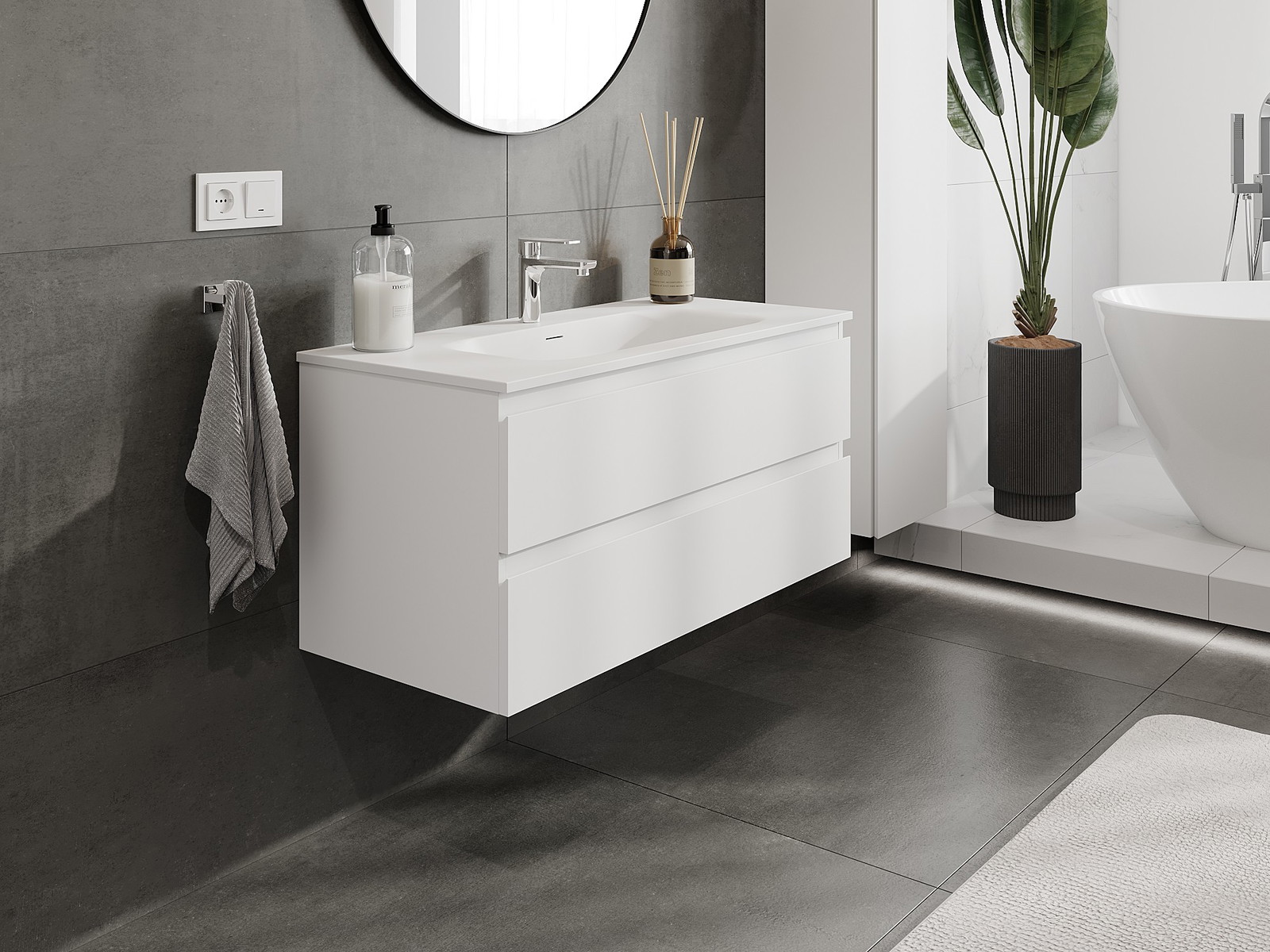 Modulaariset kylpyhuonekalusteemme voidaan yhdistää eri väriyhdistelminä, mikä mahdollistaa täydellisen personoinnin. Voit valita sekä ulkonäön että yksittäisten elementtien toiminnot, mikä mahdollistaa huonekalujen mukauttamisen omien tyylillisten ja käyttöön liittyvien mieltymysten mukaan.