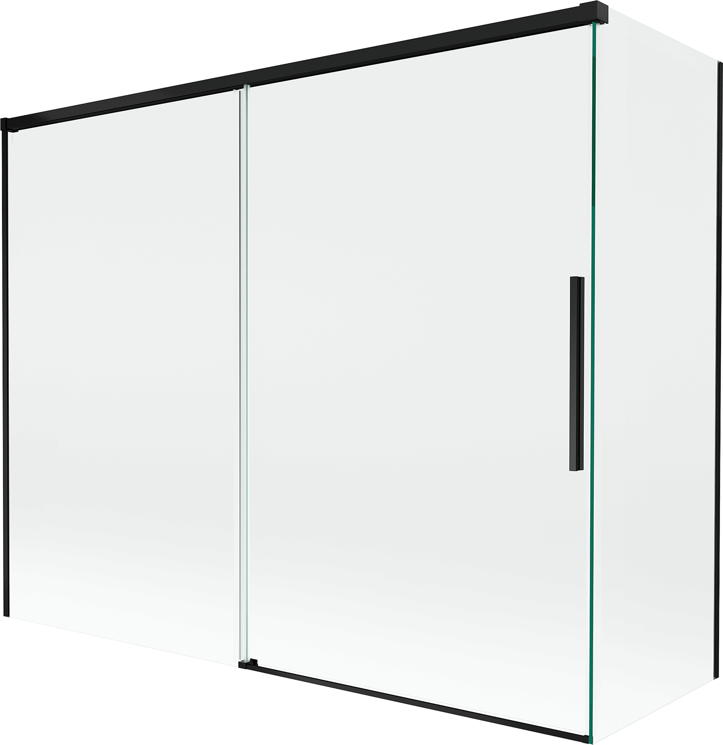 Mexen Rox 2-osainen liukuva kylpyammeen suihkuseinä 190 + 80 x 150 cm, läpinäkyvä, musta - 8C9-190-080-70-00