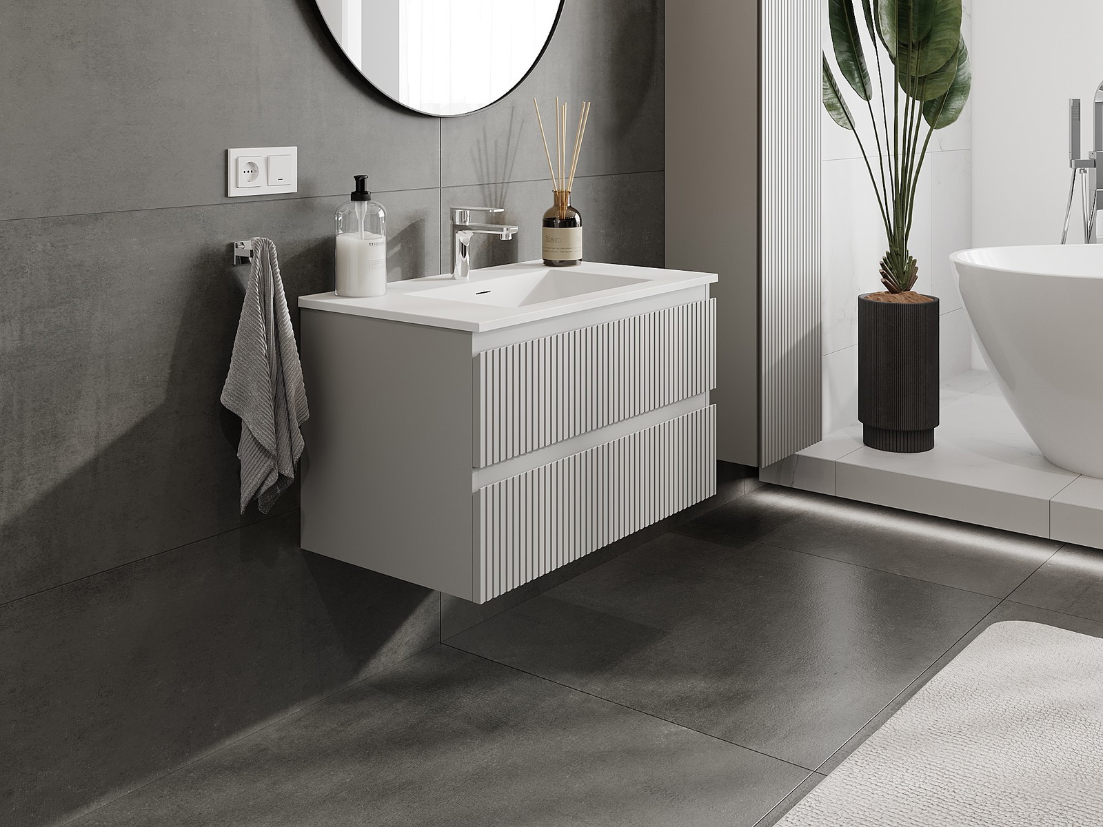 Mexen Rivel kylpyhuonekaappi 80 cm pesualtaalla Otis, 2 laatikkoa, uritettuna, harmaa matta/valkoinen matta