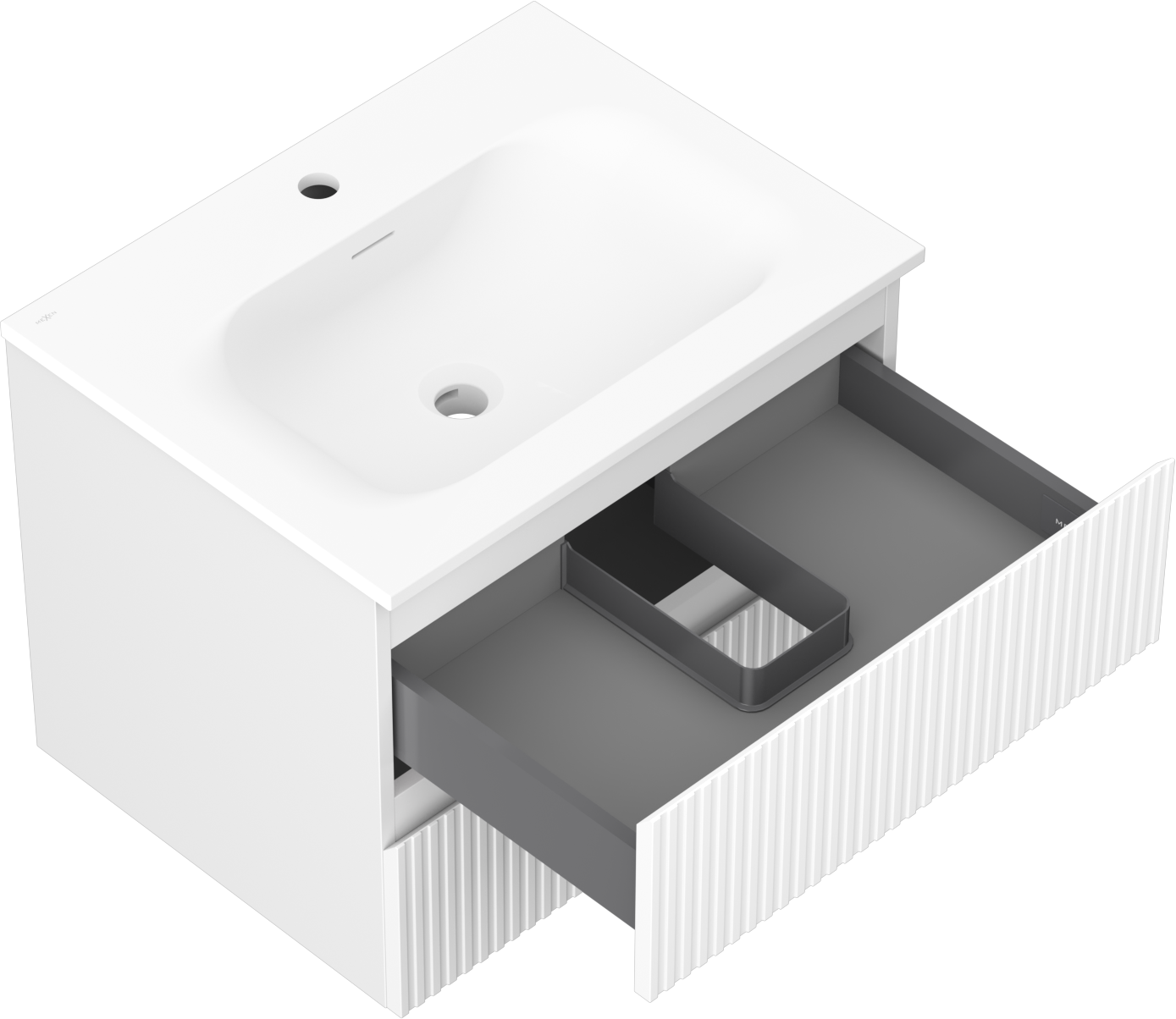 Mexen Rivel kylpyhuonekaappi 60 cm pesualtaalla Vela, 2 laatikkoa, uritettu, valkoinen matta - 91A20-06047-2-BFF01-W23M01