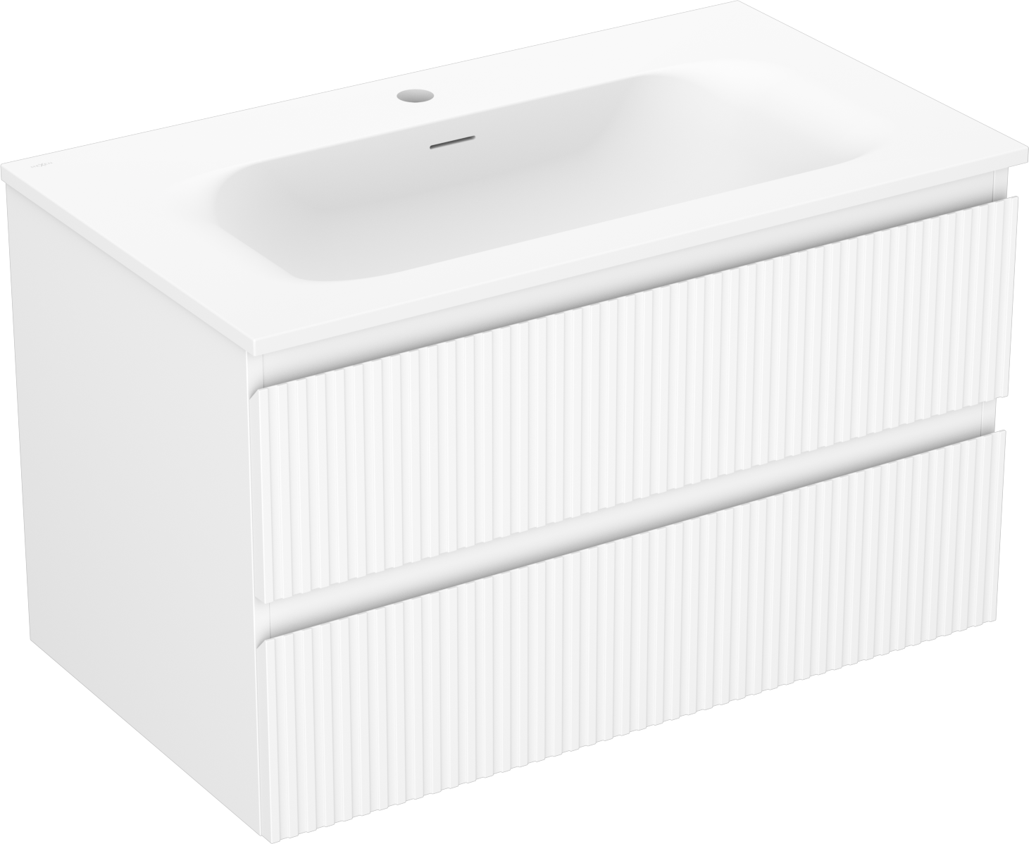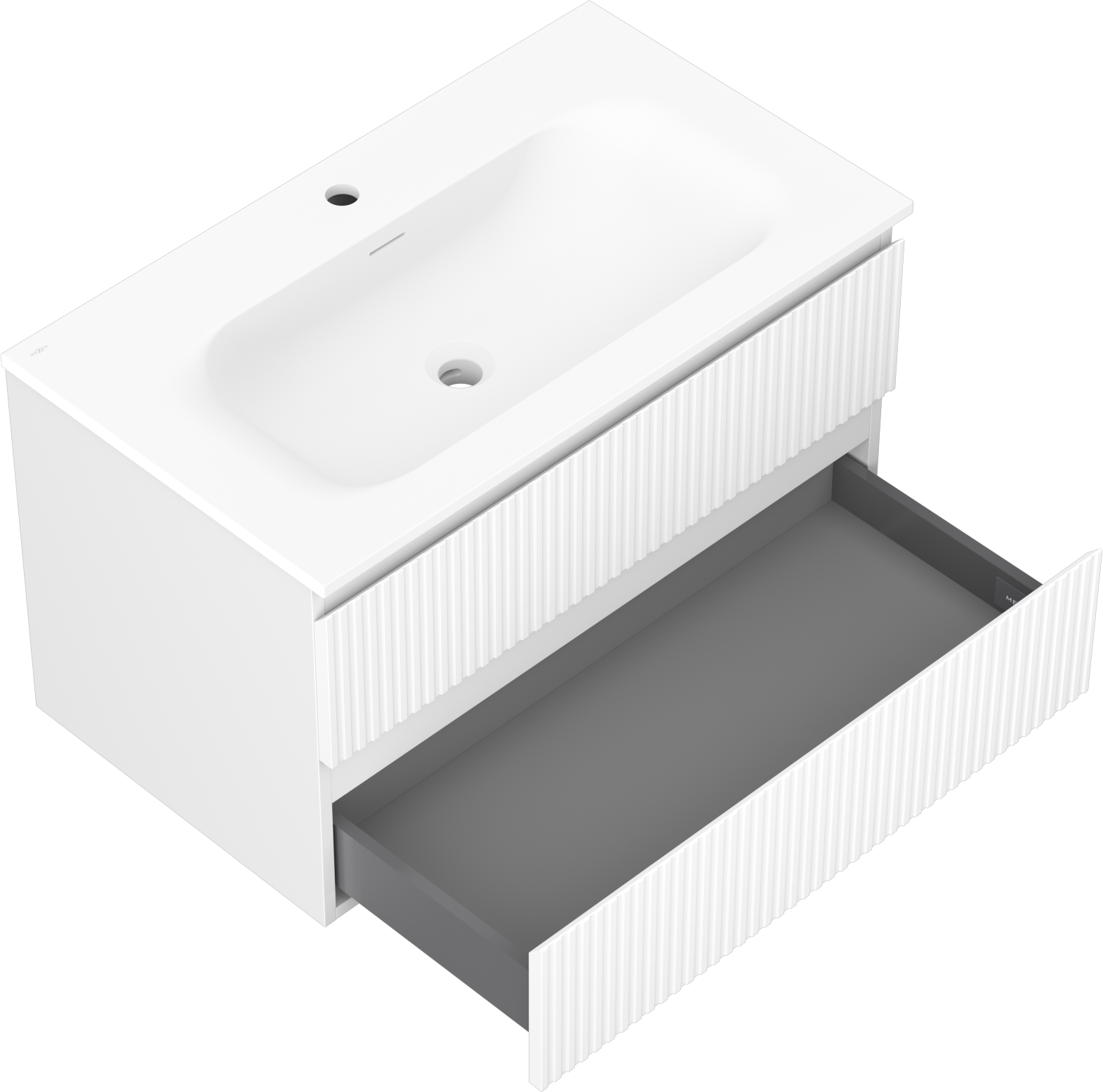 Mexen Rivel kylpyhuonekaappi 80 cm pesualtaalla Vela, 2 laatikkoa, uurrettu, mattavalkoinen - 91A20-08047-2-BFF01-W23M01