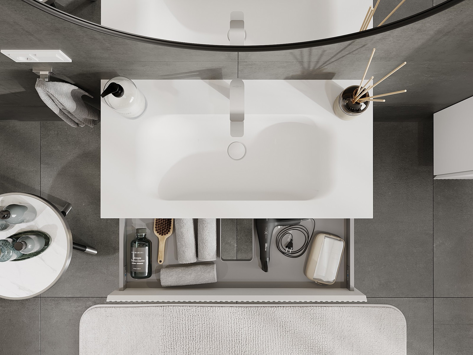 Modulaariset kylpyhuonekalusteemme voidaan yhdistää eri väriyhdistelminä, mikä mahdollistaa täydellisen personoinnin. Voit valita sekä ulkonäön että yksittäisten elementtien toiminnot, mikä mahdollistaa huonekalujen mukauttamisen omien tyylillisten ja käyttöön liittyvien mieltymysten mukaan.