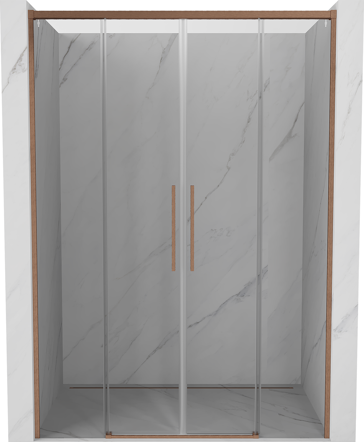 Mexen Rox Duo liukuovi suihkuovi 160 cm, läpinäkyvä, harjattu kupari - 8C2-160-002-65-00