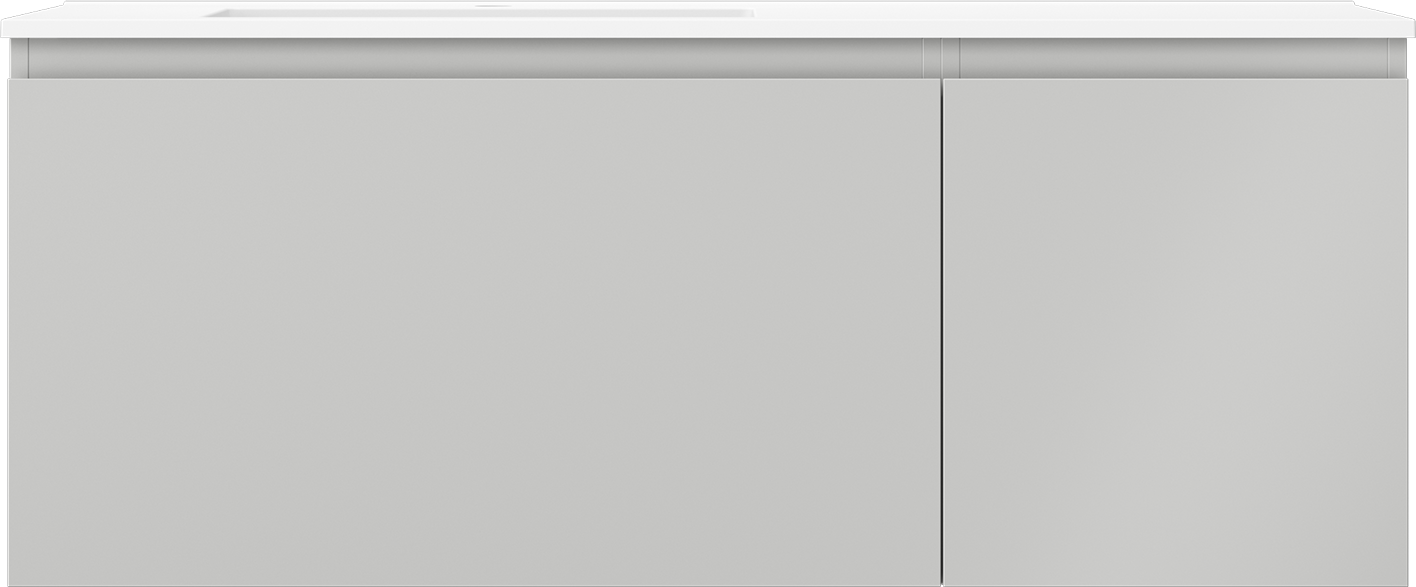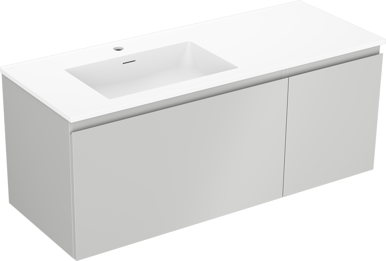 Mexen Orio kylpyhuonekaappi 120 cm vasemmanpuoleisella Otis-pesualtaalla, 1S, 1D, harmaa matta/valkoinen matta