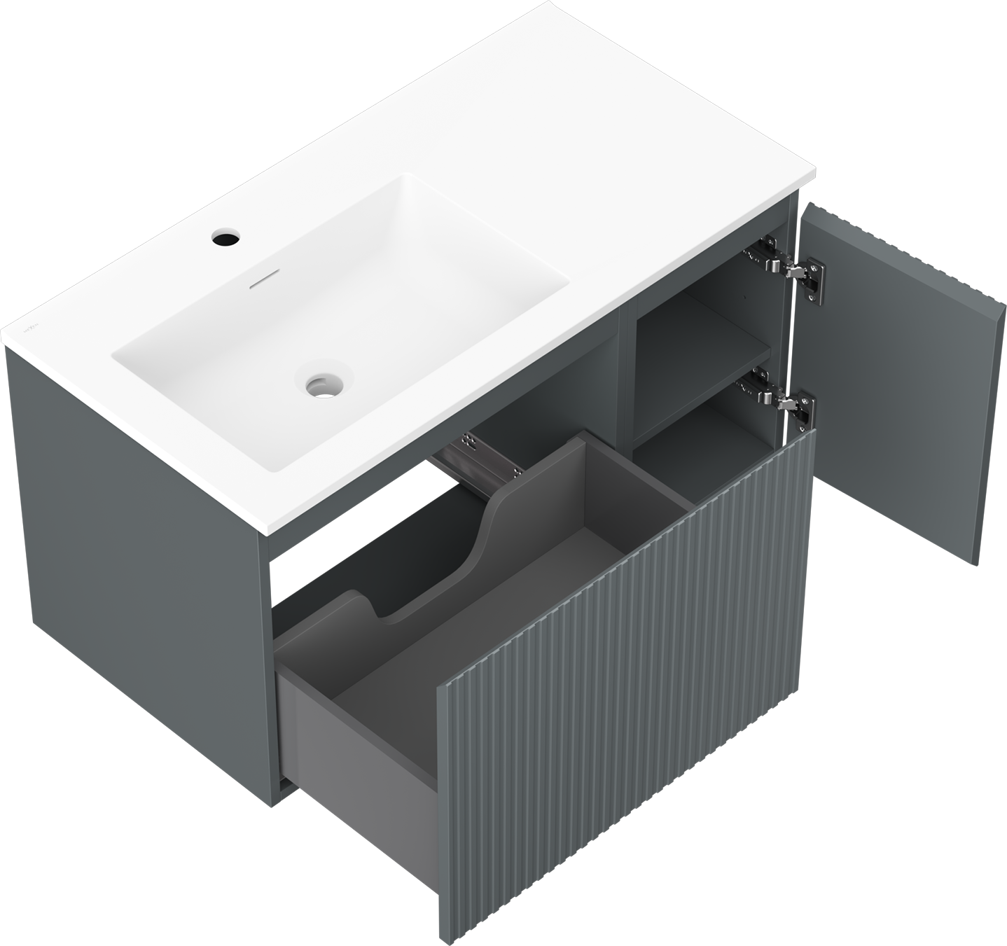 Mexen Rivel kylpyhuonekaappi 90 cm vasemmalla pesualtaalla Otis, 1S, 1D, uritettu, grafiitin harmaa matta/valkoinen matta