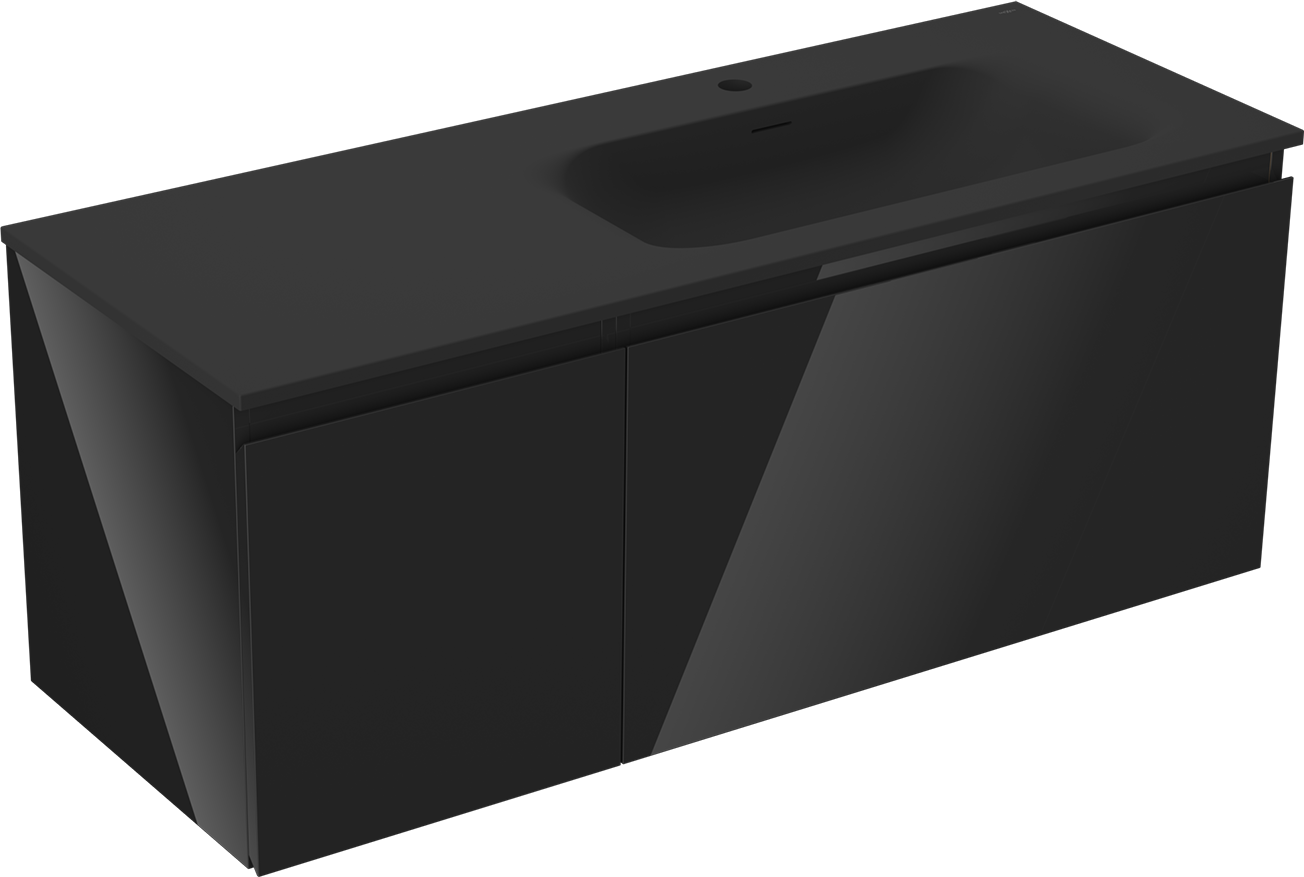 Mexen Orio kylpyhuonekaappi 120 cm pesualtaalla Vela oikea, 1S, 1D, musta kiiltävä/musta matta - 91A13-12047-3-BBFF70-W23P71