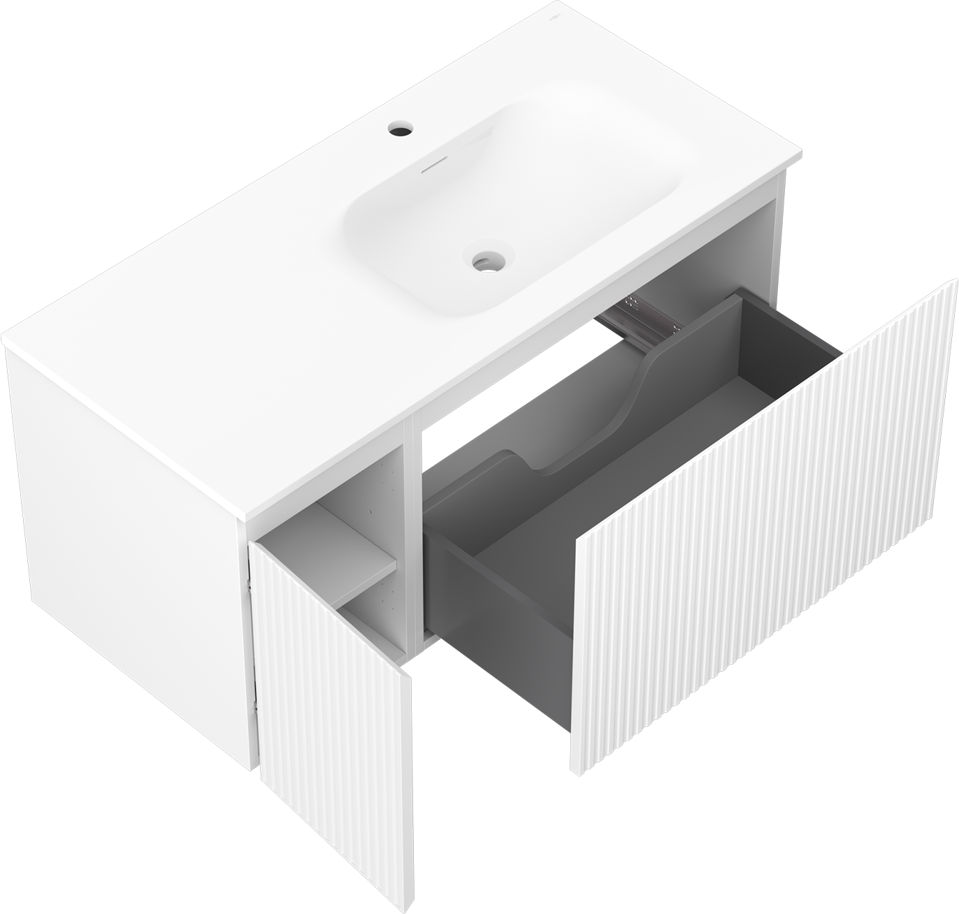 Mexen Rivel kylpyhuonekaappi 100 cm altaalla Vela oikea, 1S, 1D, uurrettu, valkoinen matta - 91A23-10047-3-BBFF01-W23P01