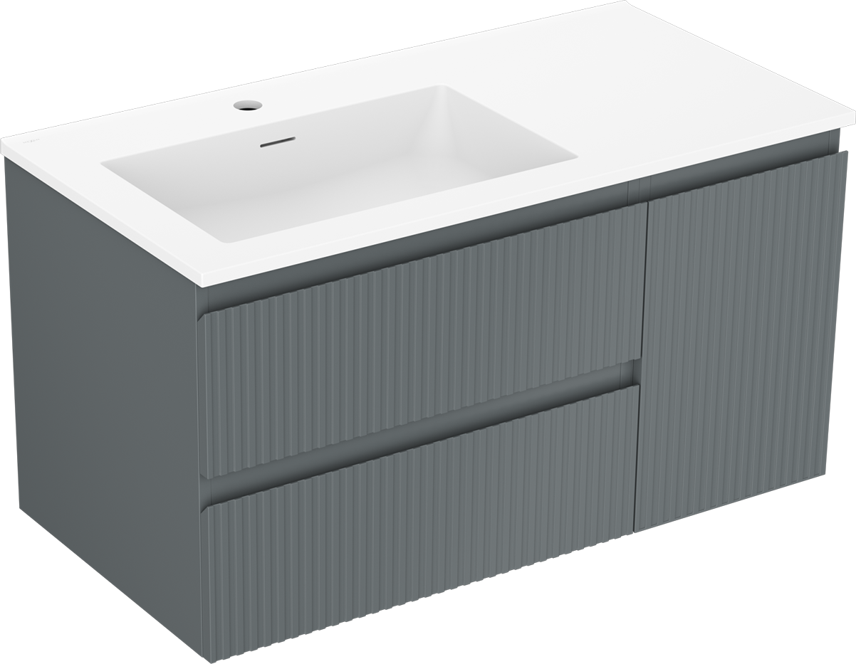 Mexen Rivel 90 cm kylpyhuonekaappi Otis vasen, 2S, 1D, uurrettu, grafiitin matta/valkoinen matta - 91A23-09047-3-BBFFF66-W18L01