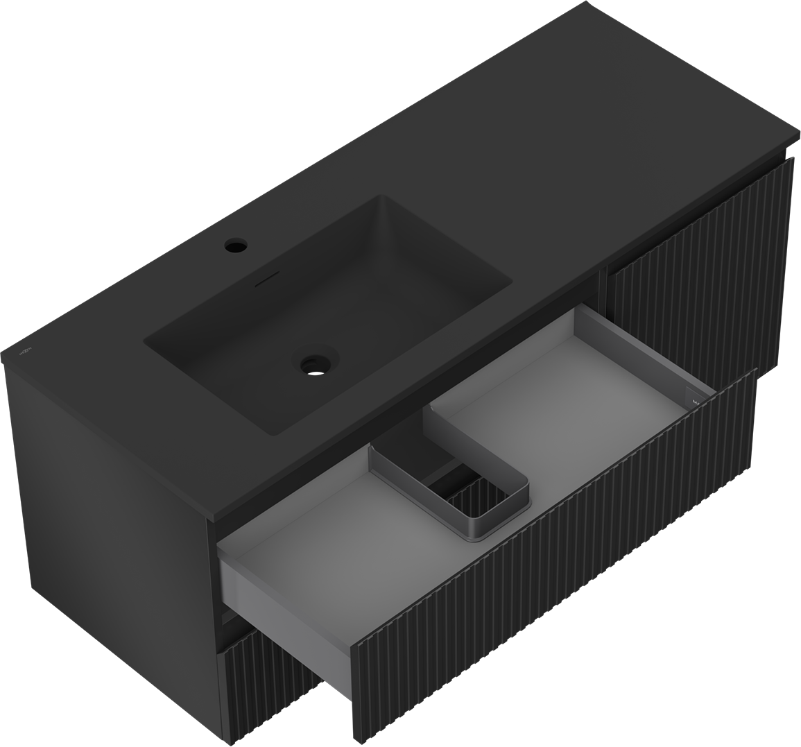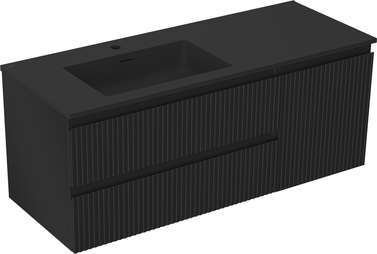 Mexen Rivel kylpyhuonekaappi 120 cm lavuaarilla Otis vasen, 2S, 1D, uurrettu, musta matta - 91A23-12047-3-BBFFF71-W18L71