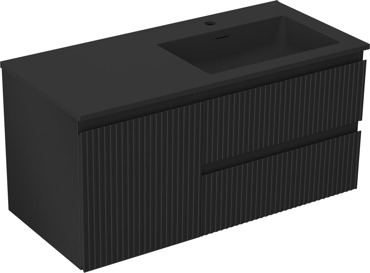 Mexen Rivel 100 cm kylpyhuonekaappi oikealla altaalla Otis, 2S, 1D, aaltokuvioitu, musta matta - 91A23-10047-3-BBFFF71-W18P71