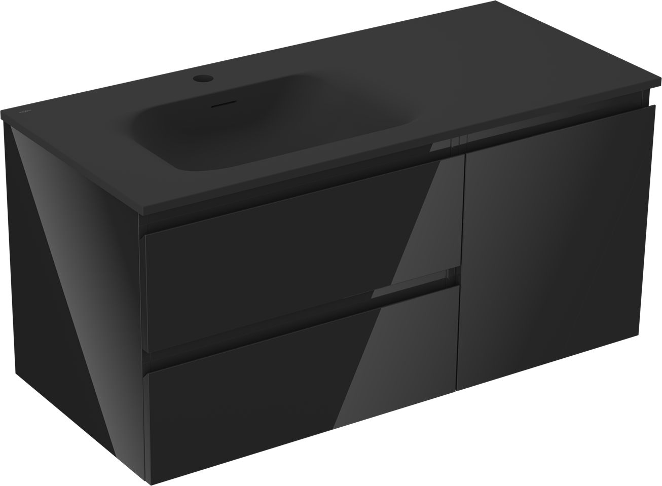 Mexen Orio kylpyhuonekaappi 100 cm vasemmalla Vela-altaalla, 2S, 1D, musta kiiltävä/matta musta - 91A13-10047-3-BBFFF70-W23L71