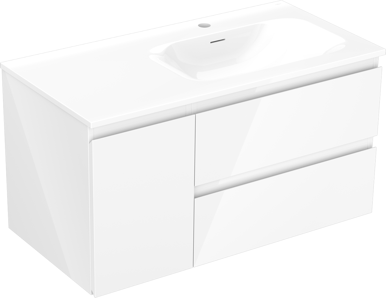 Mexen Orio kylpyhuonekaappi 90 cm pesualtaalla Vela oikea, 2S, 1D, valkoinen kiiltävä - 91A13-09047-3-BBFFF00-W23P00