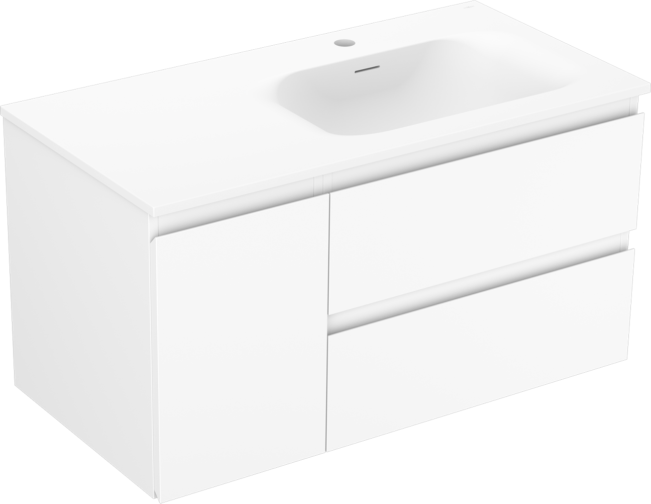 Mexen Orio kylpyhuonekaappi 90 cm pesualtaalla, oikea Vela, 2S, 1D, valkoinen matta - 91A13-09047-3-BBFFFF01-W23P01