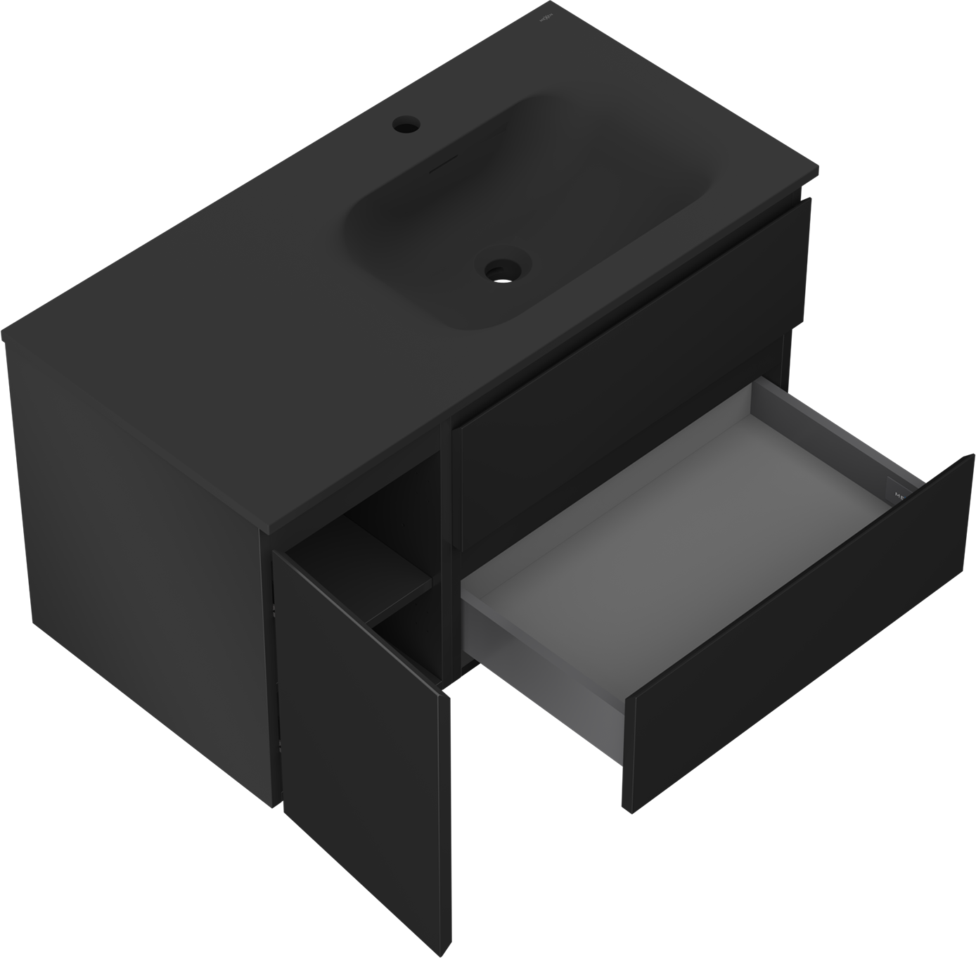Mexen Orio yhden oven ja kahden laatikon musta mattakylpyhuonekaappi 90 cm altaalla Vela oikea - 91A13-09047-3-BBFFF71-W23P71