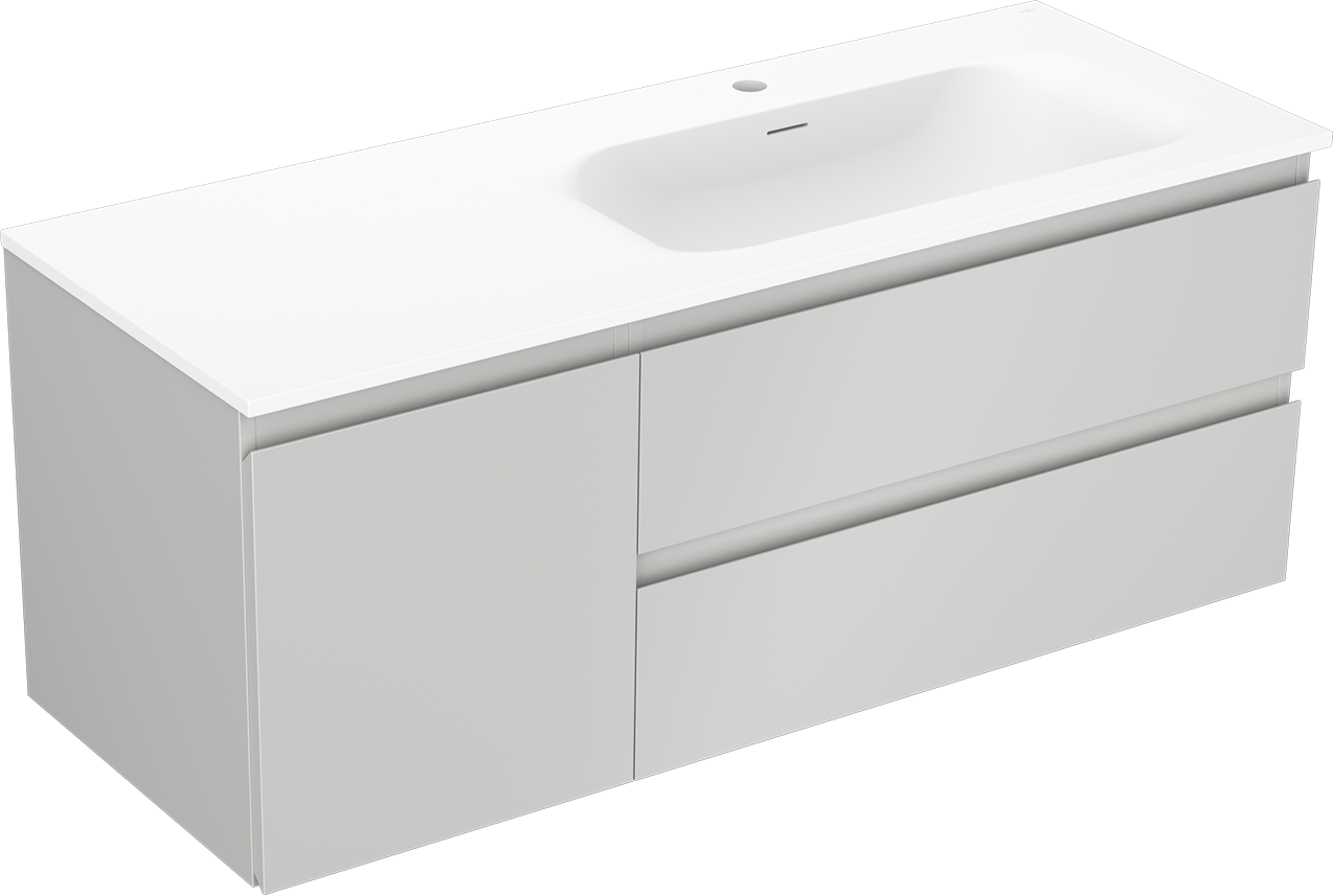 Mexen Orio 120 cm kylpyhuonekaappi oikealla altaalla Vela, 2S, 1D, harmaa matta/valkoinen matta - 91A13-12047-3-BBFFF62-W23P01