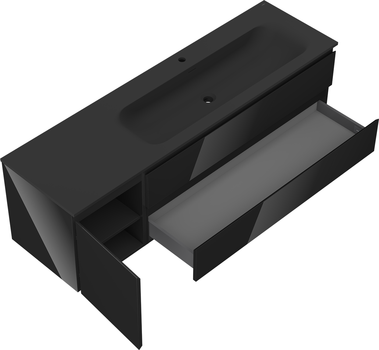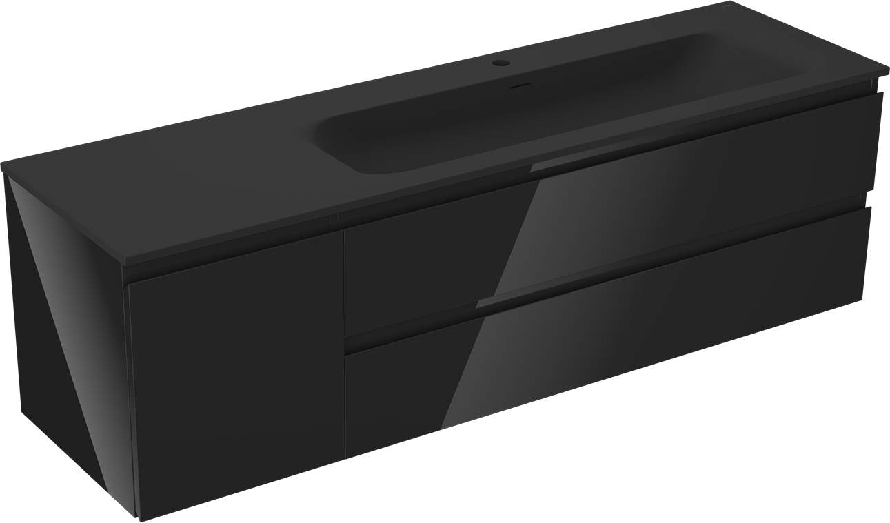 Mexen Orio 160 cm kylpyhuonekaappi Vela oikea, 2S, 1D, musta kiiltävä/musta matta - 91A13-16047-3-BBFFF70-W23P71
