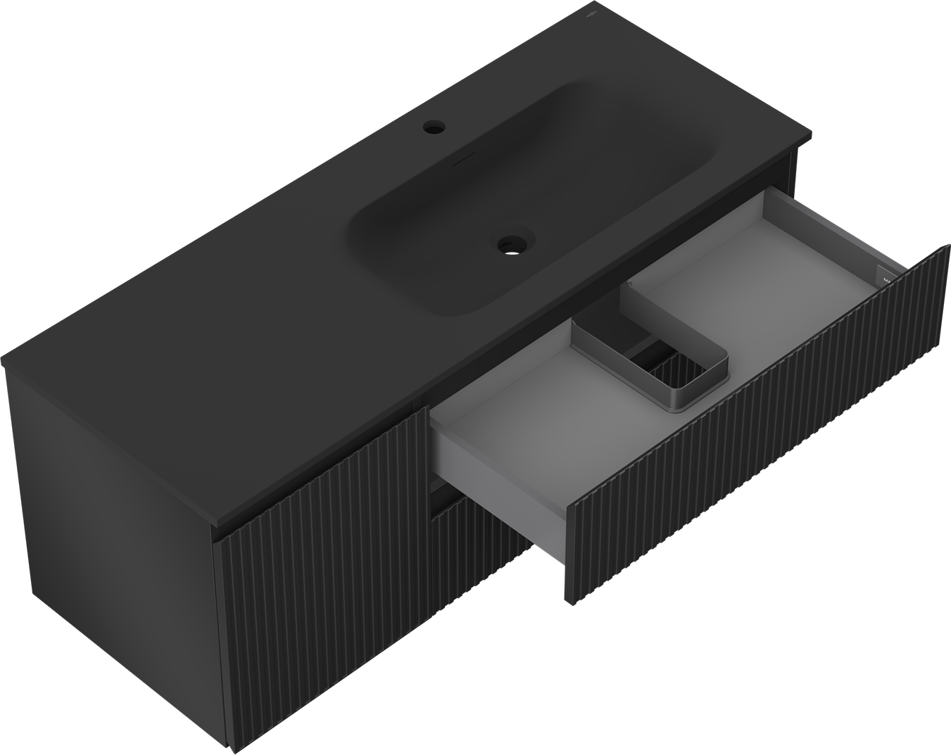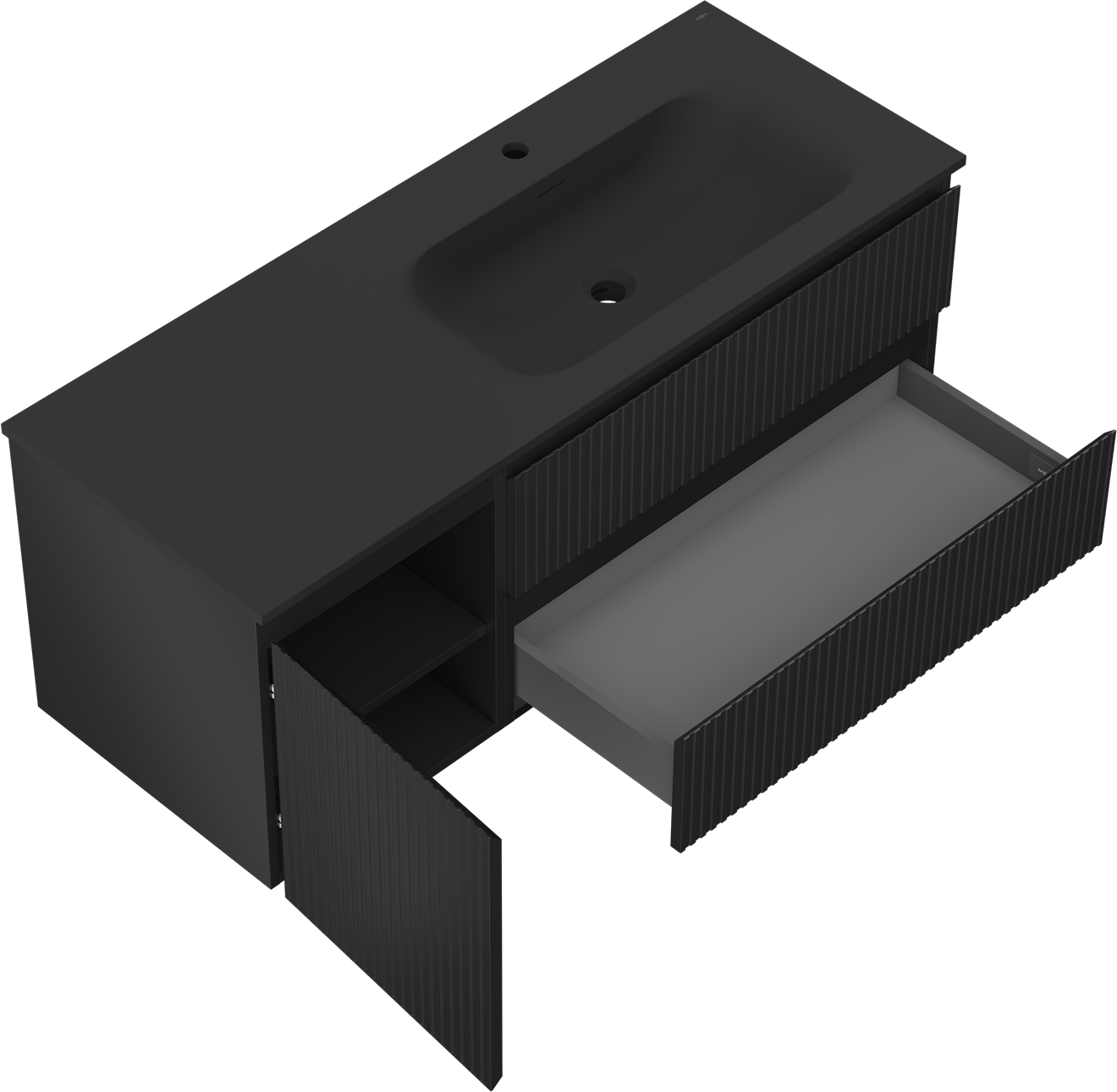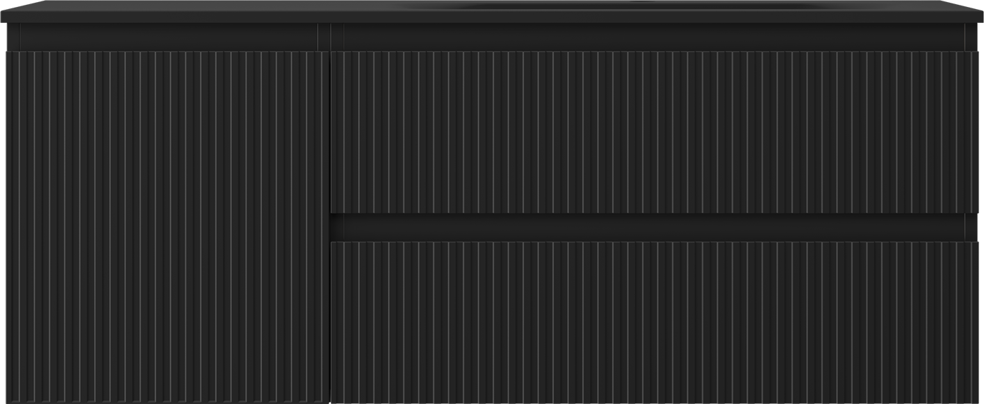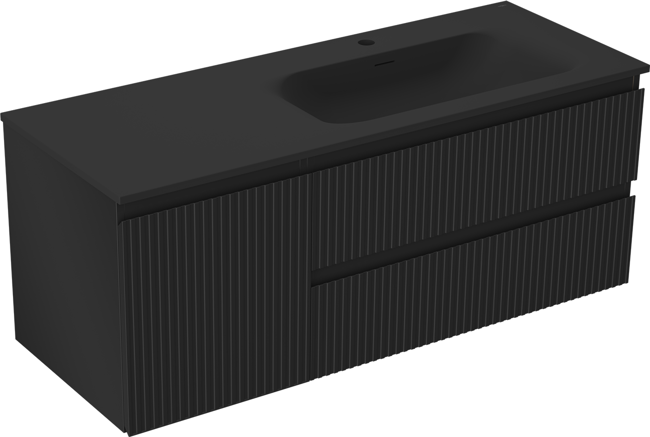 Mexen Rivel 120 cm kylpyhuonekaappi, jossa on oikea Vela-allas, 2S, 1D, uurrettu, mattamusta - 91A23-12047-3-BBFFF71-W23P71