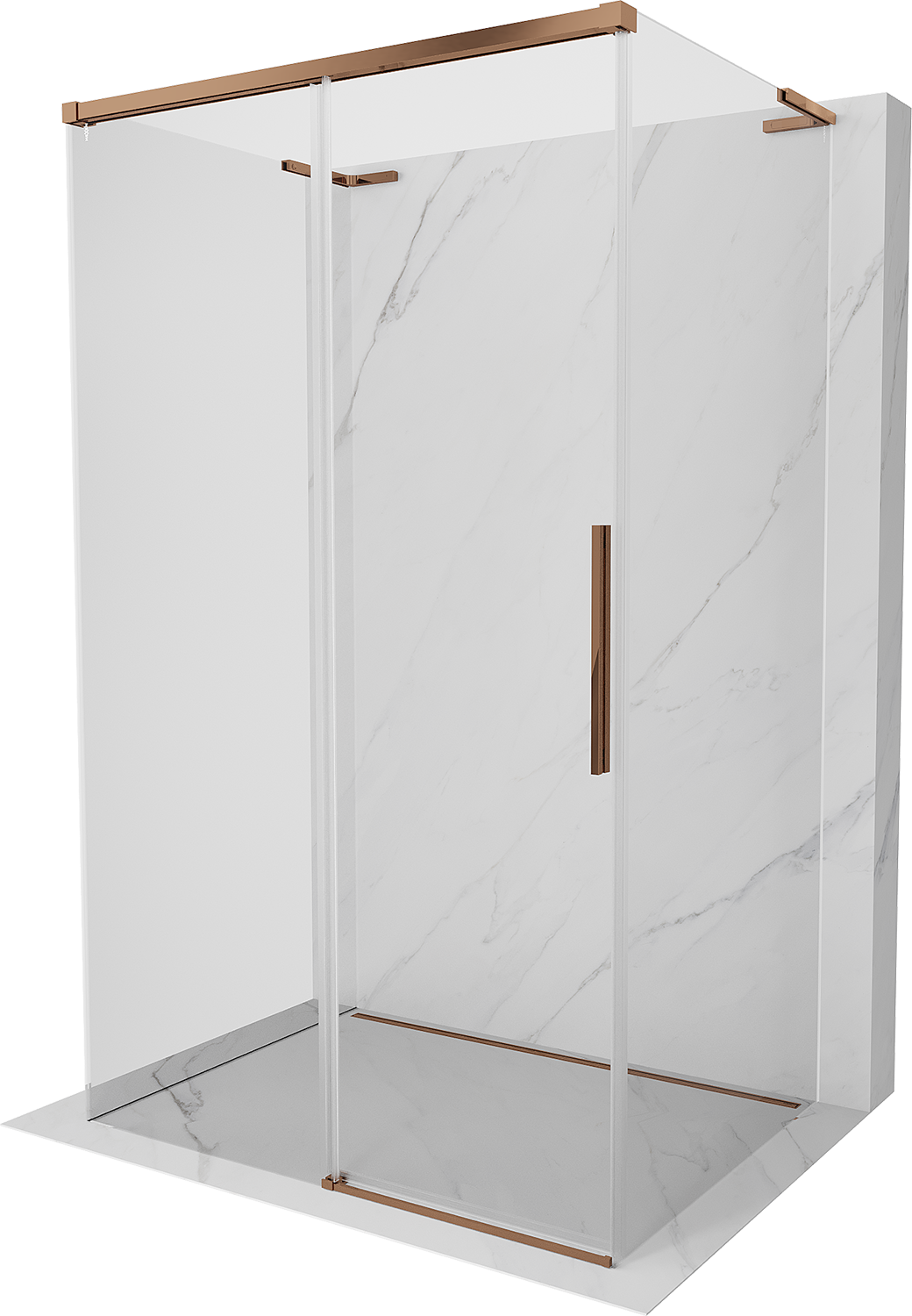Mexen Rox-3S L 3-seinäinen liukuva suihkukaappi 125 x 90 cm, läpinäkyvä, ruusukulta - 8C2L-125-090-60-00-3S