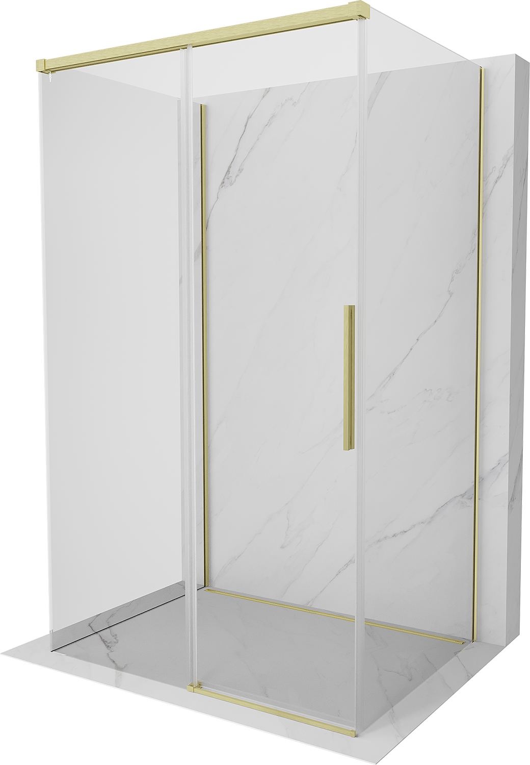 Mexen Rox-3S 3-seinäinen liukuva suihkukaappi 150 x 85 cm, läpinäkyvä, harjattu kulta - 8C2-150-085-55-00-3S