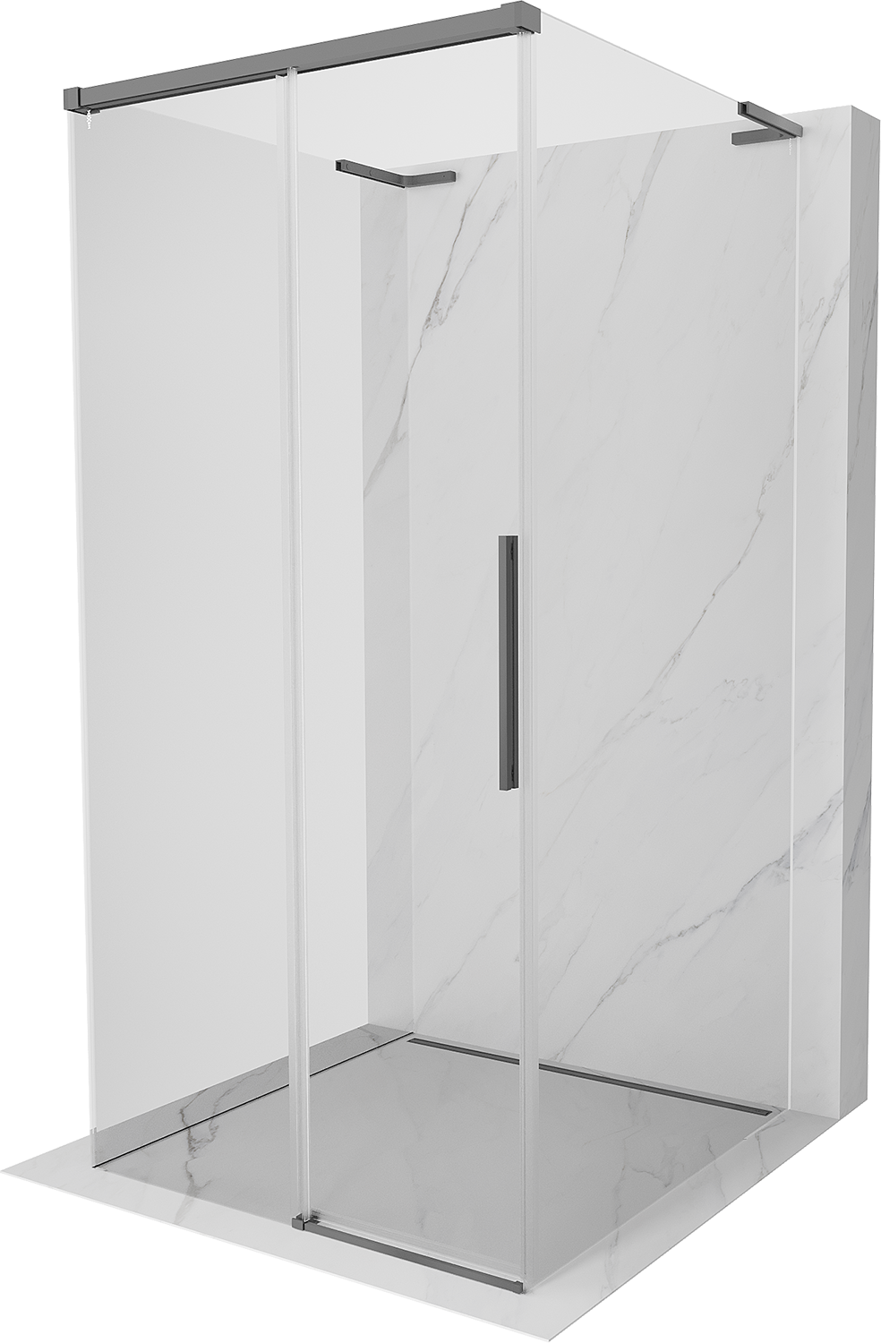 Mexen Rox-3S L 90 x 90 cm kolmiosainen liukuovi suihkukoppi, läpinäkyvä, gun metal - 8C2L-090-090-95-00-3S