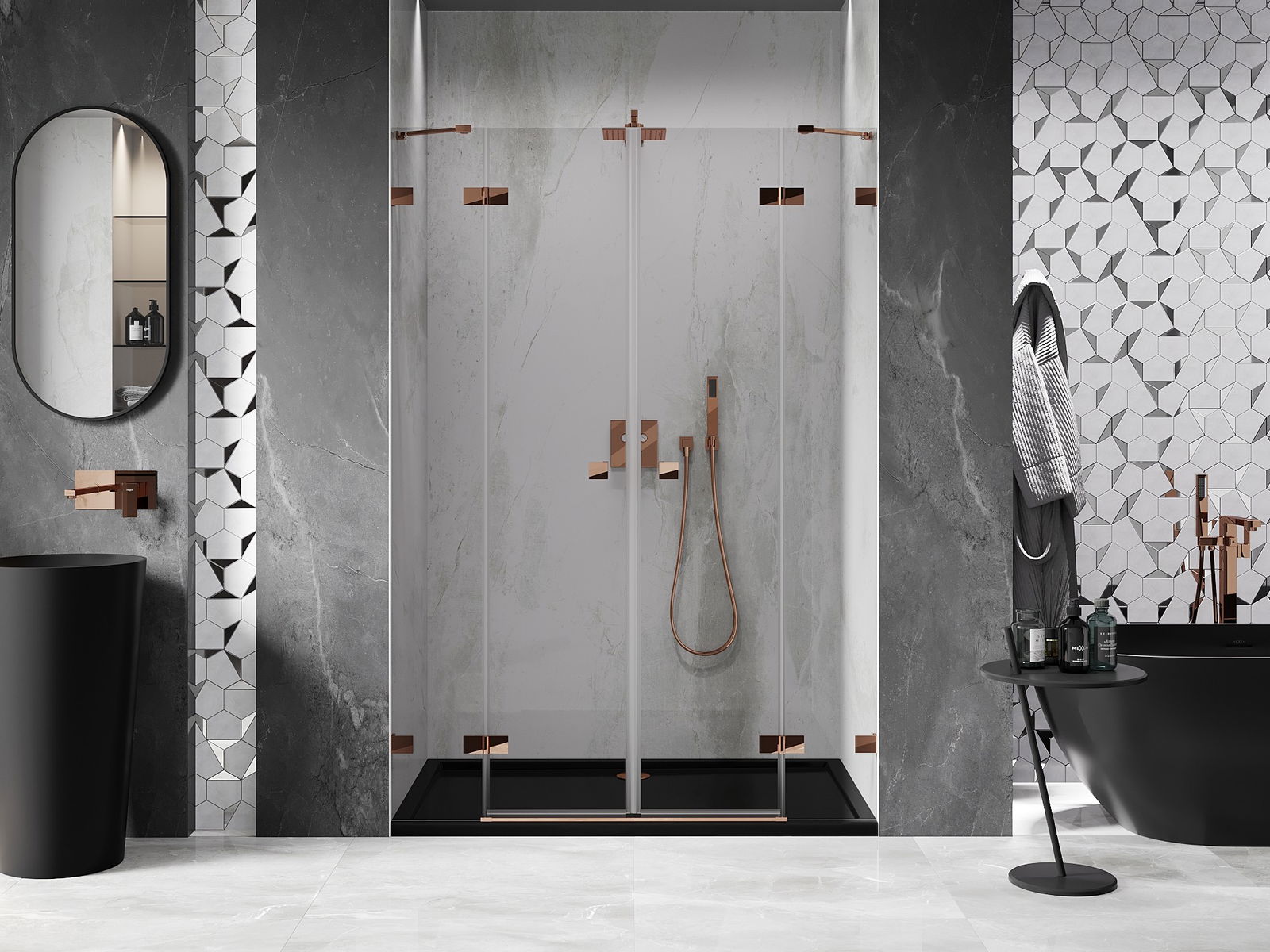 Pidikkeet ja saranat on valmistettu erittäin kestävästä messingistä, ja ne muodostavat lisäksilinjassa olevan lasilevyn. Tämä on erinomainen valinta, joka yhdistää eleganssin, kestävyyden ja modernin muotoilun. Tällaisilla ratkaisuilla suihku parantaa esteettisyyttä, ja samalla helpottavat puhtauden ylläpitämistä.