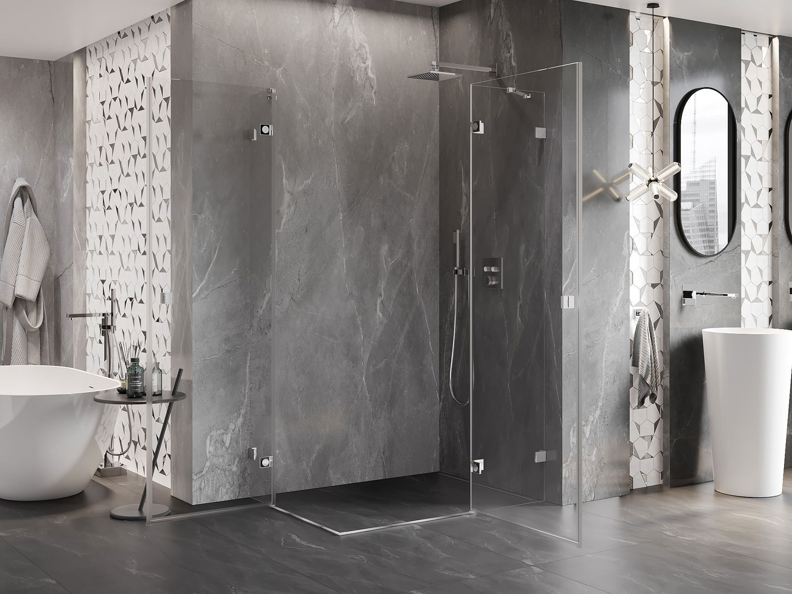 Mexen Lunar Duo oikeanpuoleinen saranoitu suihkukoppi 90 x 70 cm, läpinäkyvä, kromi - 834-090P-070L-01-00