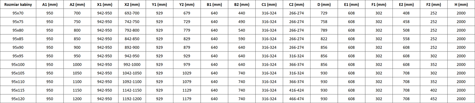 Koko: 95x80 cm (oikea ovi 95 cm, vasen ovi 80 cm)