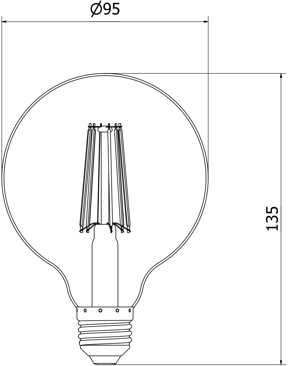 Mexen Vintis LED-filamenttilamppu E27, G95, 10W, Lämmin - 2700K, 1320 lm, kirkas - L157-E27-1027-00