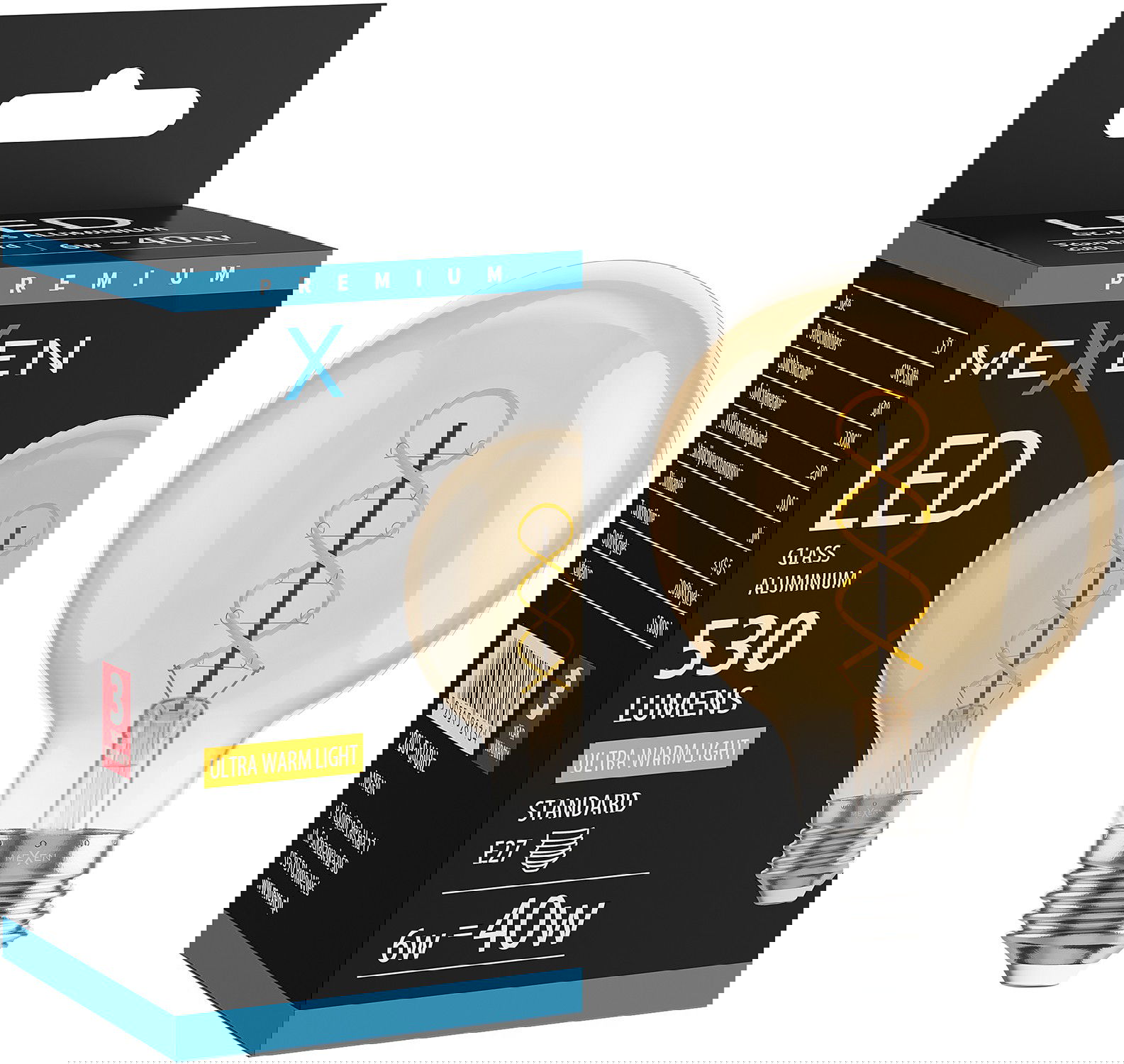 Mexen Vintis LED-filamenttikierrelamppu E27, G80, 6W, Lämmin - 2200K, 530 lm, meripihka - L165-E27-0622-50