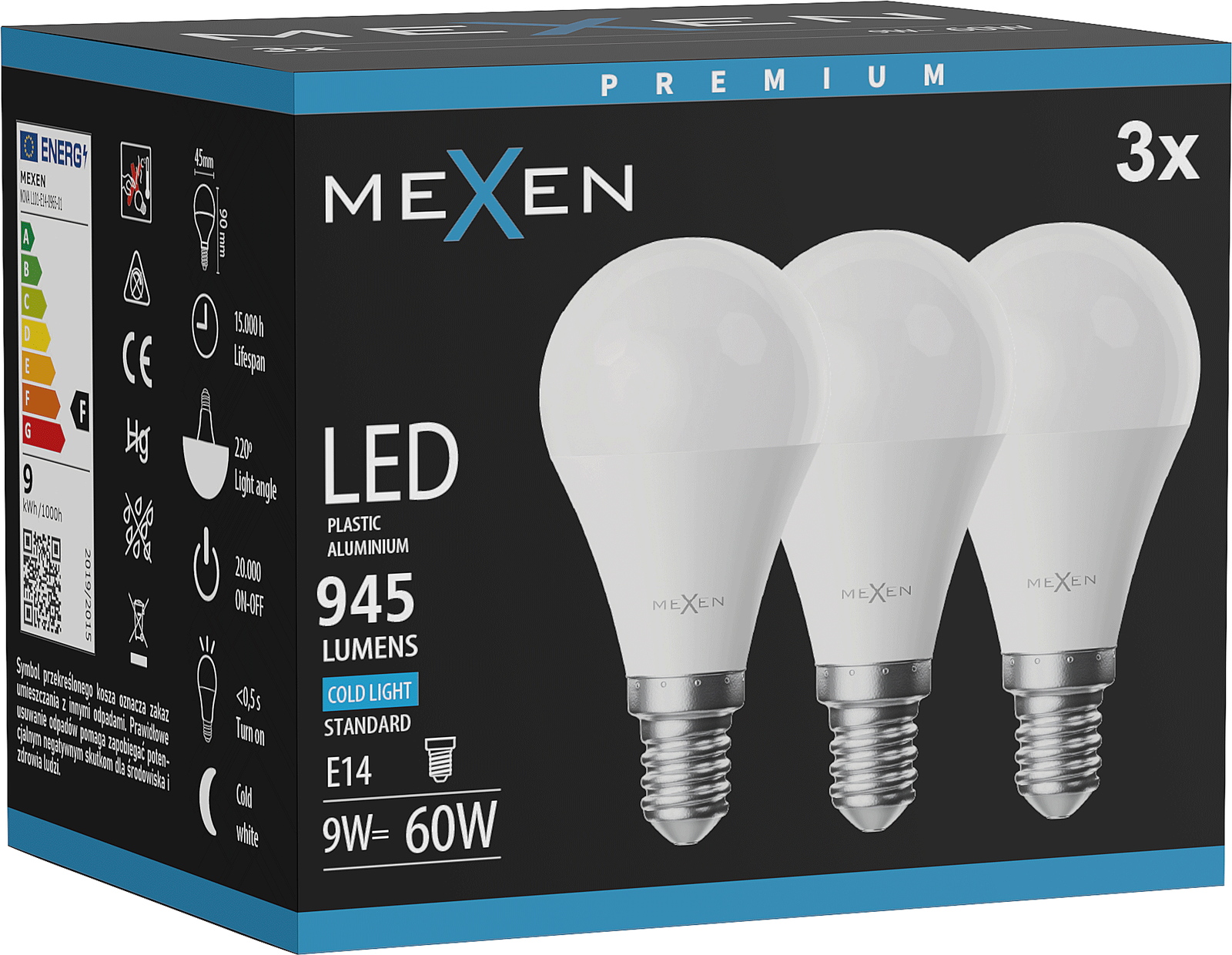Mexen Nova 3x LED-lamppu E14, G45, 9W, Kylmä - 6500K, 945 lm - L101-E14-0965-01x03