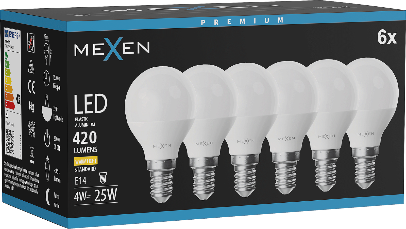 Mexen Nova 6x LED-lamppu E14, G45, 4W, Lämmin - 3000K, 420 lm - L101-E14-0430-01x06