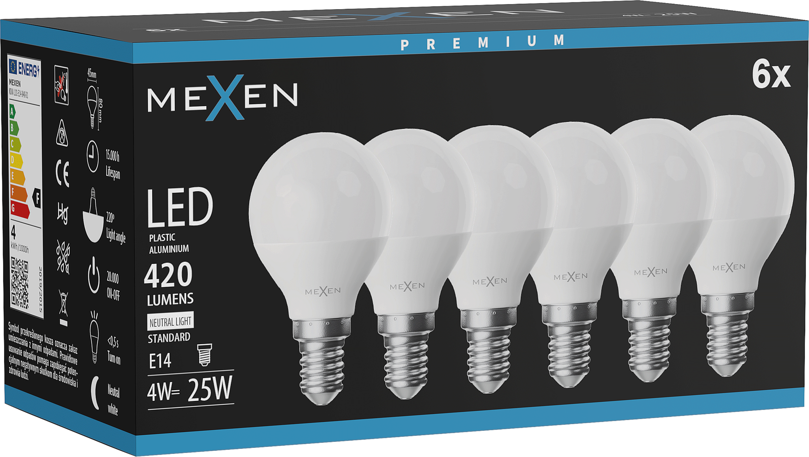 Mexen Nova 6x LED-lamppu E14, G45, 4W, Neutraali - 4000K, 420 lm - L101-E14-0440-01x06