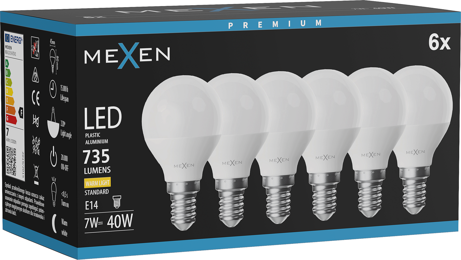 Mexen Nova 6x LED-lamppu E14, G45, 7W, Lämmin - 3000K, 735 lm - L101-E14-0730-01x06