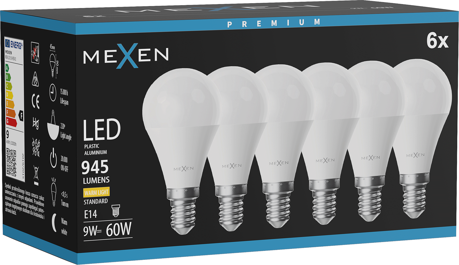 Mexen Nova 6x LED-lamppu E14, G45, 9W, Lämmin - 3000K, 945 lm - L101-E14-0930-01x06